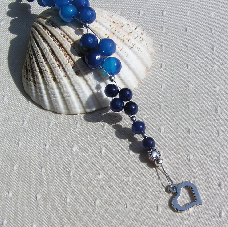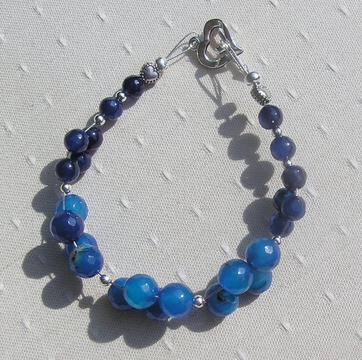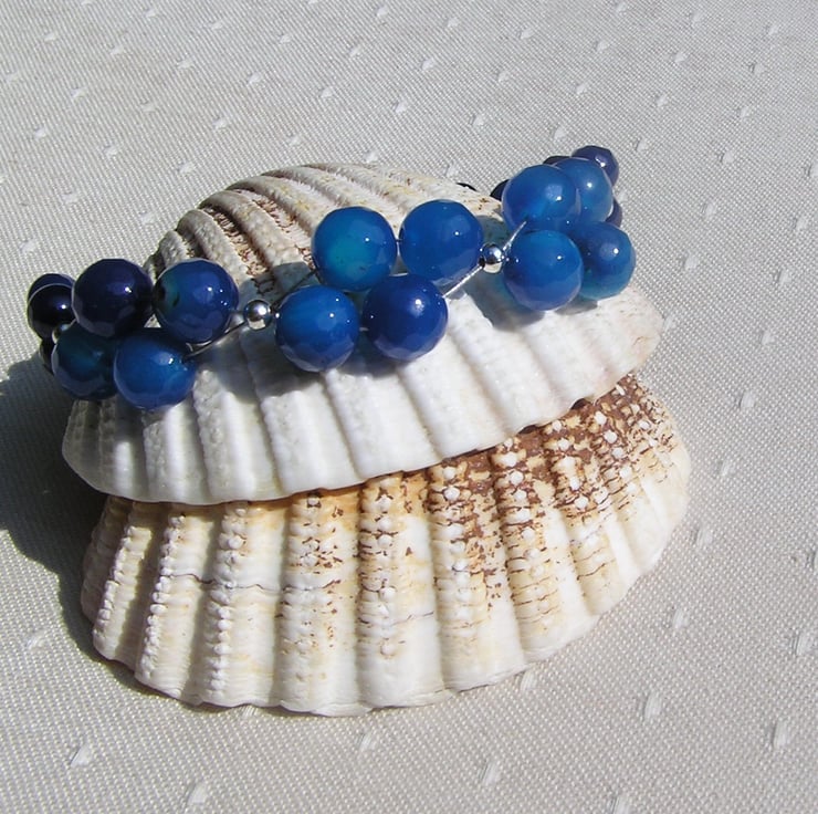 This Stunning Bracelet is made wholly from Blue Agate faceted round beads, in various shades & sizes, clustered together in four's and for that added bit of sparkle tiny Silver spacer beads
