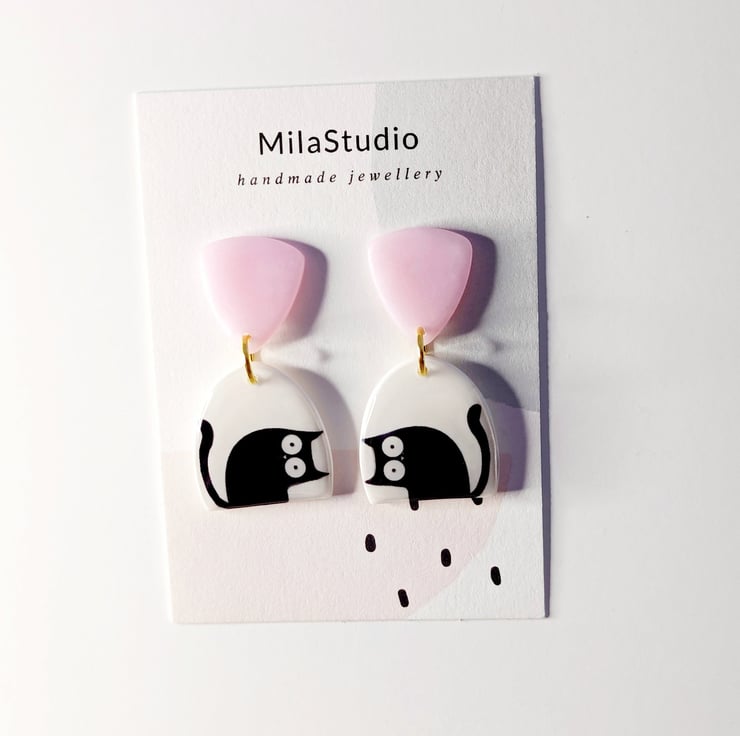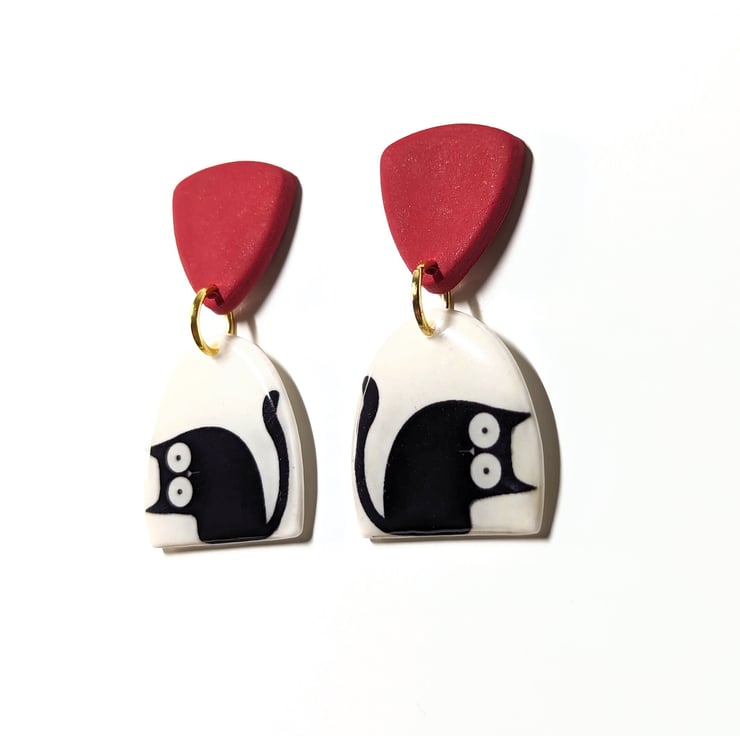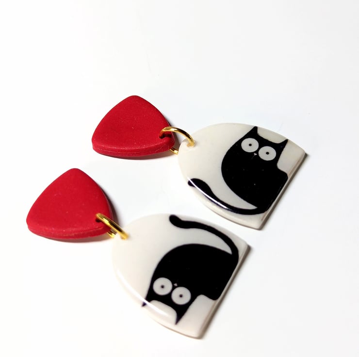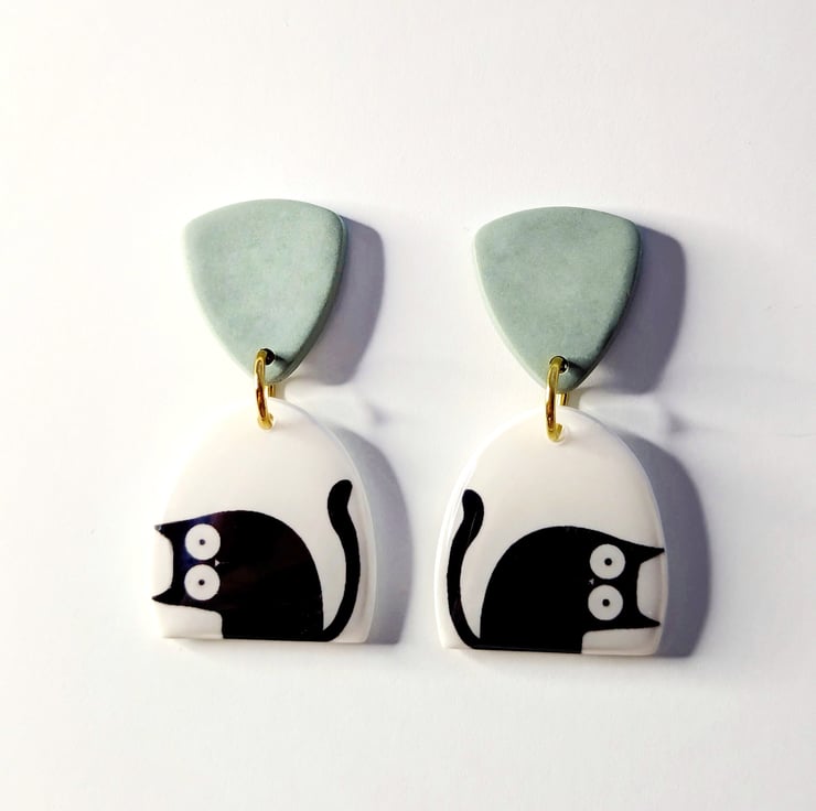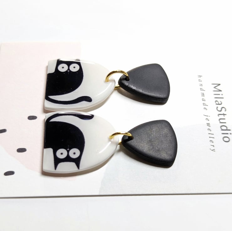 Handmade Cat Earrings – Polymer Clay, Charming Handmade UK Jewellery