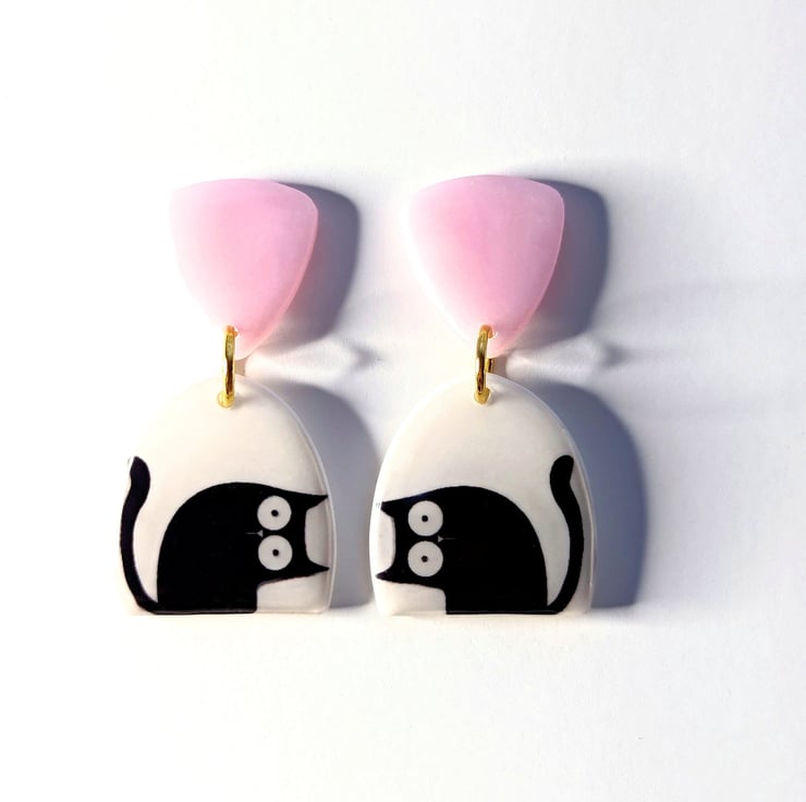 Add a touch of charm to your jewellery collection with these adorable handmade polymer clay cat earrings.