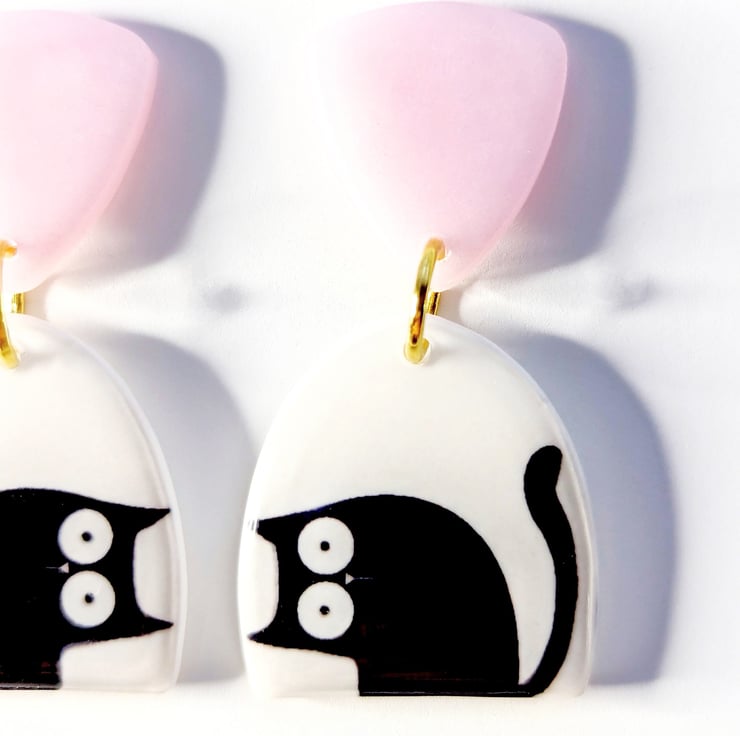 Lovingly crafted by hand, each pair features a delightful cat design made from lightweight, hypoallergenic polymer clay and finished with resin for durability and a smooth shine. Comfortable for all-day wear and full of personality, they’re the perfect accessory for any cat lover.