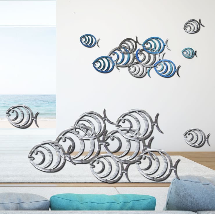 Transform your décor with the Coastal Ripple Fish Wall Sculpture, a stunning piece crafted from 3mm thick stainless steel. This artwork fuses the gentle curves of ocean waves with the sleek form of a fish, delivering a striking 3D ripple effect for a sense of motion and depth. The sculpture measures 88cm long by 40cm high and is offered in brilliant blue or natural silver, each finished with a textured ripple surface that enhances light and shadow. Weighing just 3kg, this design is suitable for both indoor and outdoor spaces thanks to its weather-resistant finish. Ideal for bathrooms, living rooms, patios, or poolside walls, the Coastal Ripple Fish Wall Sculpture brings contemporary coastal elegance and tranquil energy to any setting, serving as a captivating centerpiece for your home.