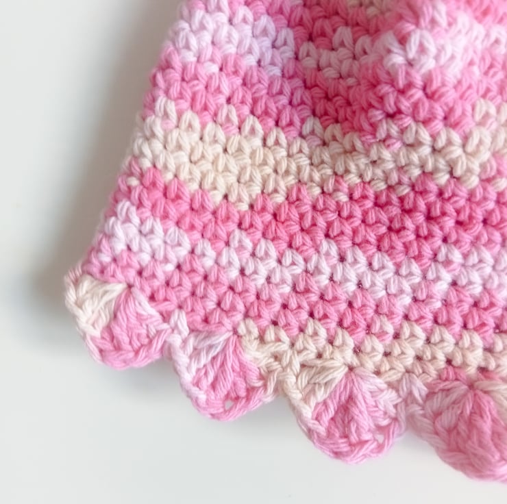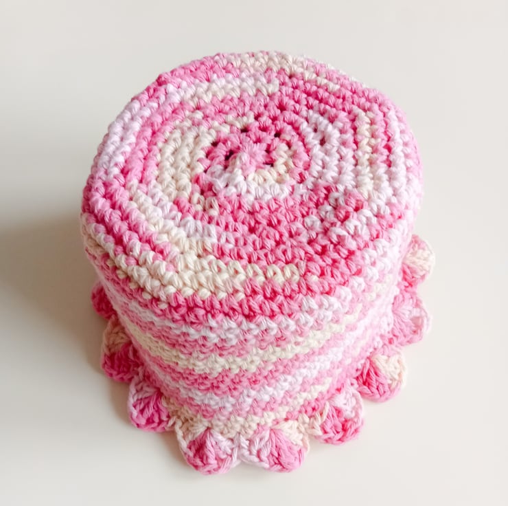 Yarn and colour: It is crochet using Divante cotton yarn in shade Strawberry Ombre. The yarn is 100 per cent cotton.