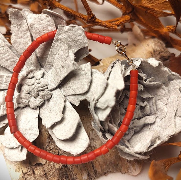 Handcrafted, true coral bracelet - 14K gold-filled, stamped clasp.