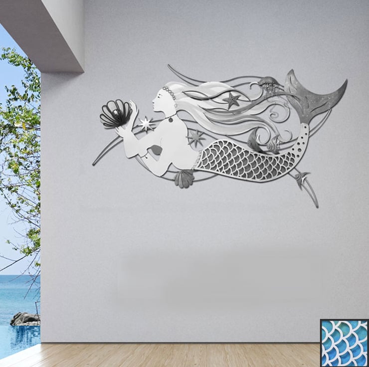 Unveil the captivating allure of the ocean with our Mystique Mermaid 3D Metal Wall Sculpture, a truly exceptional piece of hand-crafted art.