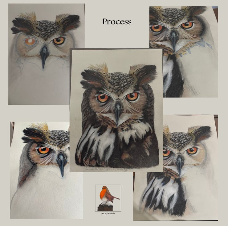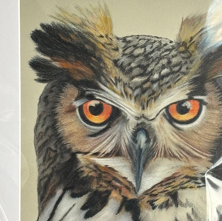 Inspired by my love of owls and their stunning beauty. I wanted to capture the expressive details with the eyes, eyes that follow you around the room, almost life like! I feel that I have achieved this along with the warm colour palette, giving this piece personality.