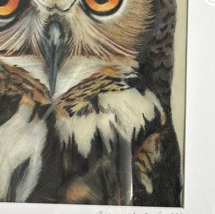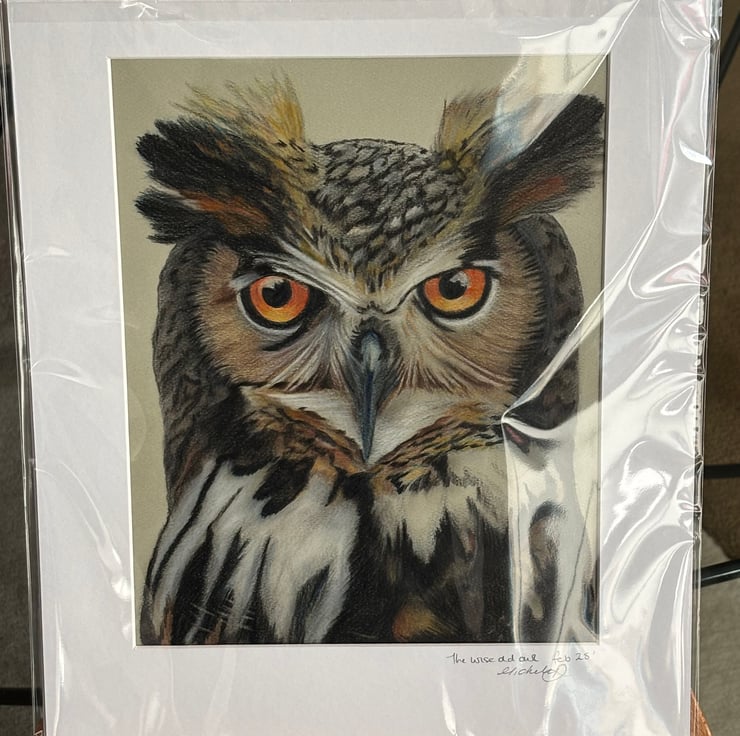 The Wise Old Owl, created using colour pencils. Full of personality and detail, this artwork captures the gentle wisdom and expressive eyes of the owl — perfect for animal lovers, nature enthusiasts, or anyone who appreciates finely detailed, whimsical art.