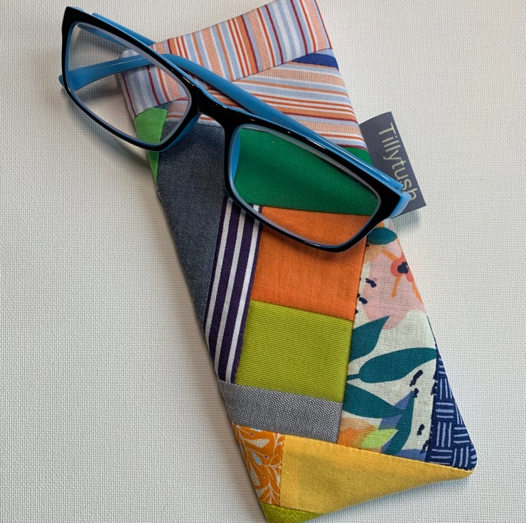 Handmade, quilted, patchwork, glasses case to keep your glasses safe.