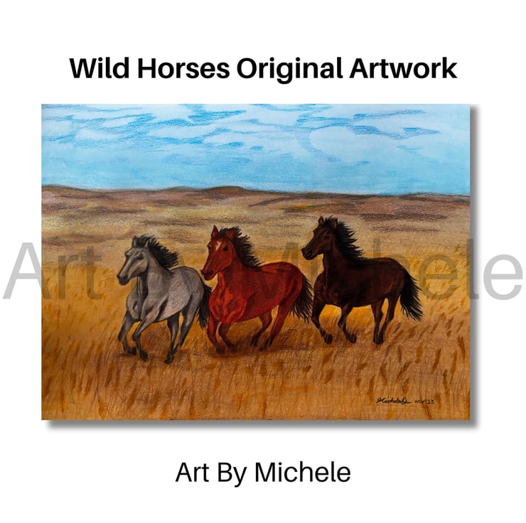 Original Wild Horses drawing, created with colour pencils and pastels. Full of energy, movement, and life, this artwork celebrates the grace, strength, and spirit of wild horses — perfect for animal lovers, equestrian enthusiasts, or anyone who appreciates expressive, detailed art. Hand-drawn with a combination of colour pencils and pastels for vibrant tones and soft, textured effects.