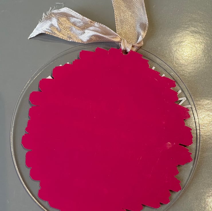 Personalised Acrylic Wedding Invitation Ornament with Painted Back & Ribbon Keep