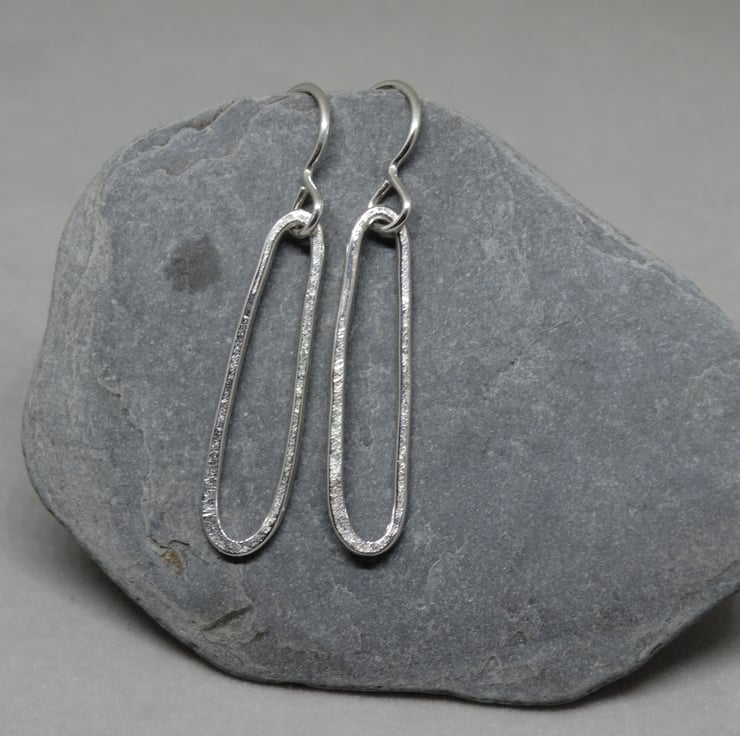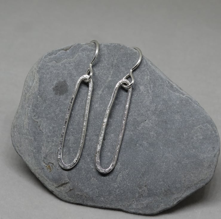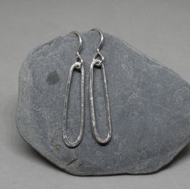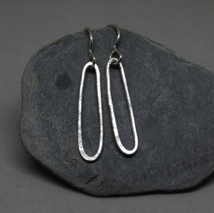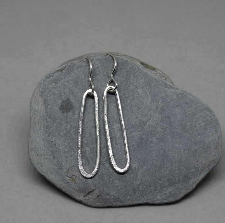 These contemporary earrings are formed from recycled sterling silver wire that I have shaped and lightly hammered to give the silver a slightly textured surface.