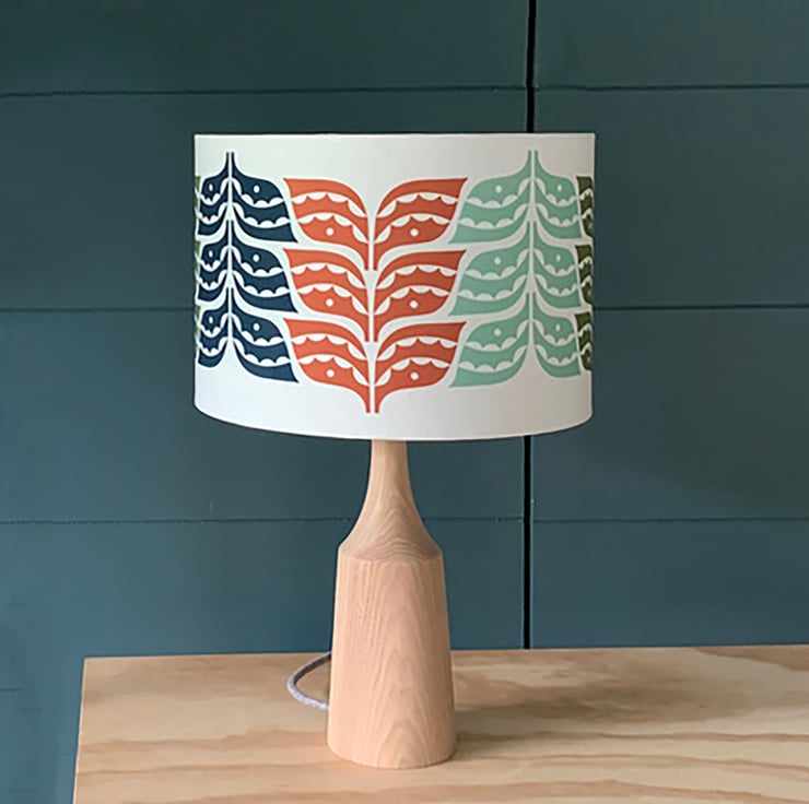 All lampshades are handmade by myself here in Dorset and are finished to a premium quality with a rolled edge and a premium folded seam. Lampshades can be used with lamp bases or as hanging pendents. This design benefits from a reversible repeat design so the lampshade can be used in any orientation.