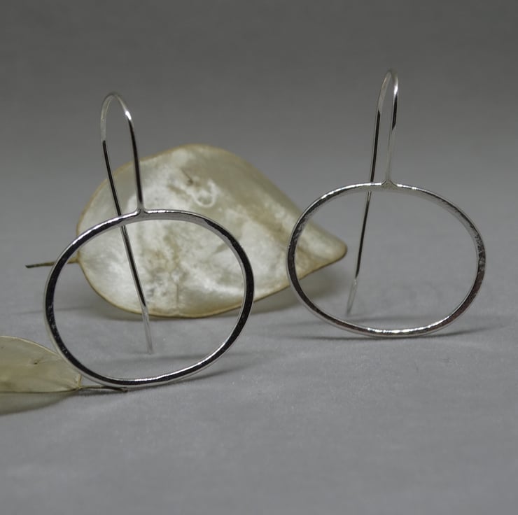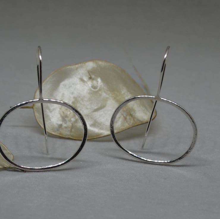 These lightweight, easy to wear contemporary earrings are handcrafted in recycled sterling silver wire that has been carefully shaped into organic forms. The silver is lightly hammered to give the earrings a subtle texture.