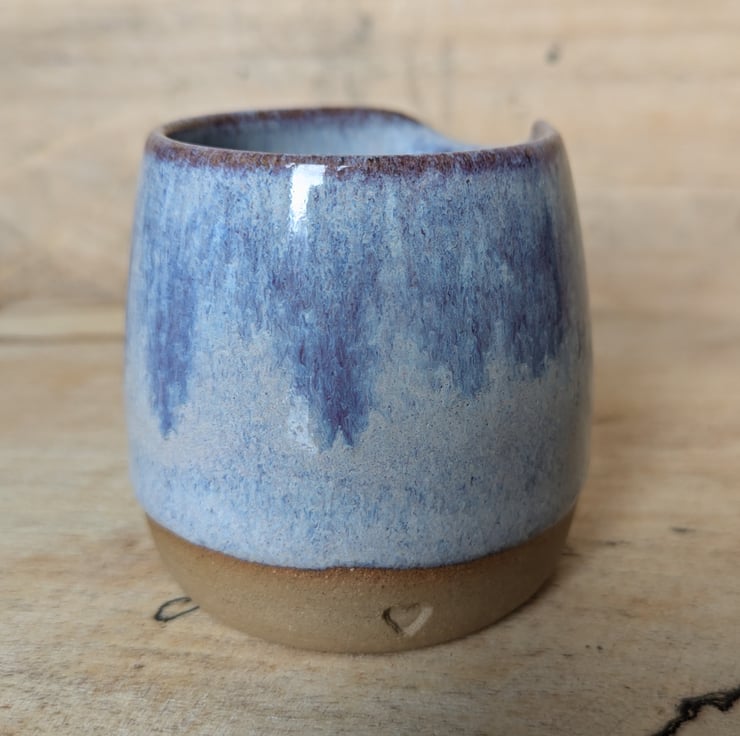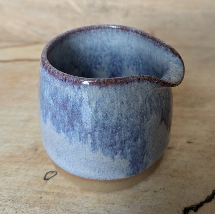 Great wee toasted clay jug in a pale purple glaze.! There are 4 of these, each a different colour. Ideal size for milk/cream & perfect for one! Fired to c1200 degrees (stoneware temperature) and this makes it more durable.