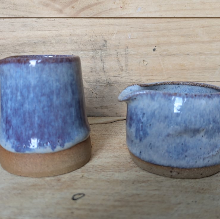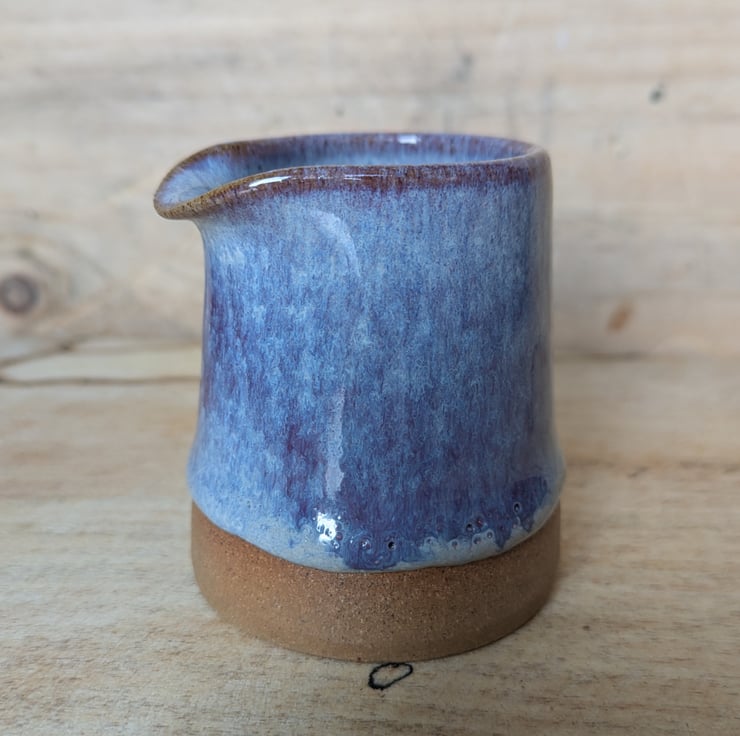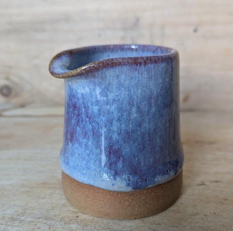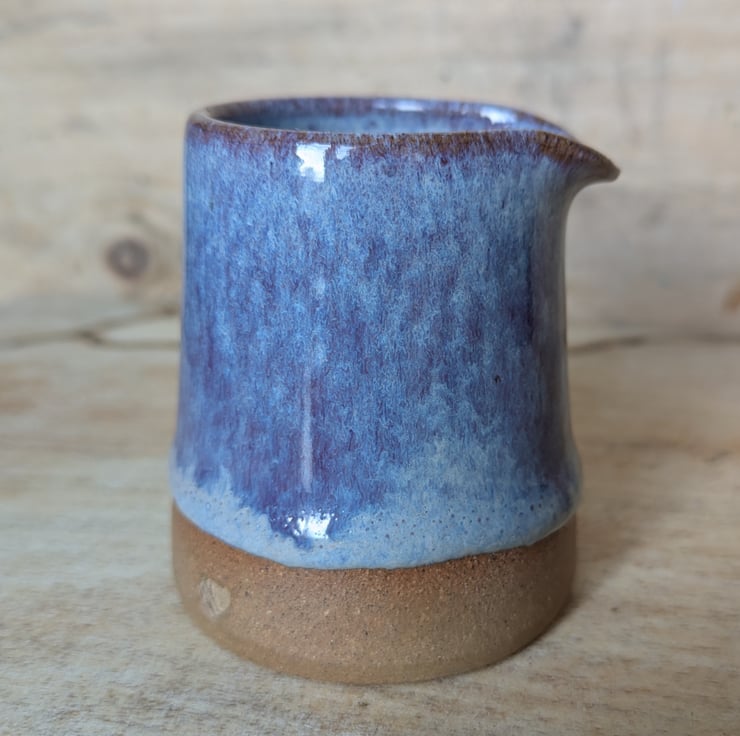 Great wee toasted clay jug in a purpley glaze...is a bit darker, more purple than the photos show. Ideal size for milk/cream & perfect for one! Fired to c1200 degrees (stoneware temperature) and this makes it more durable.
