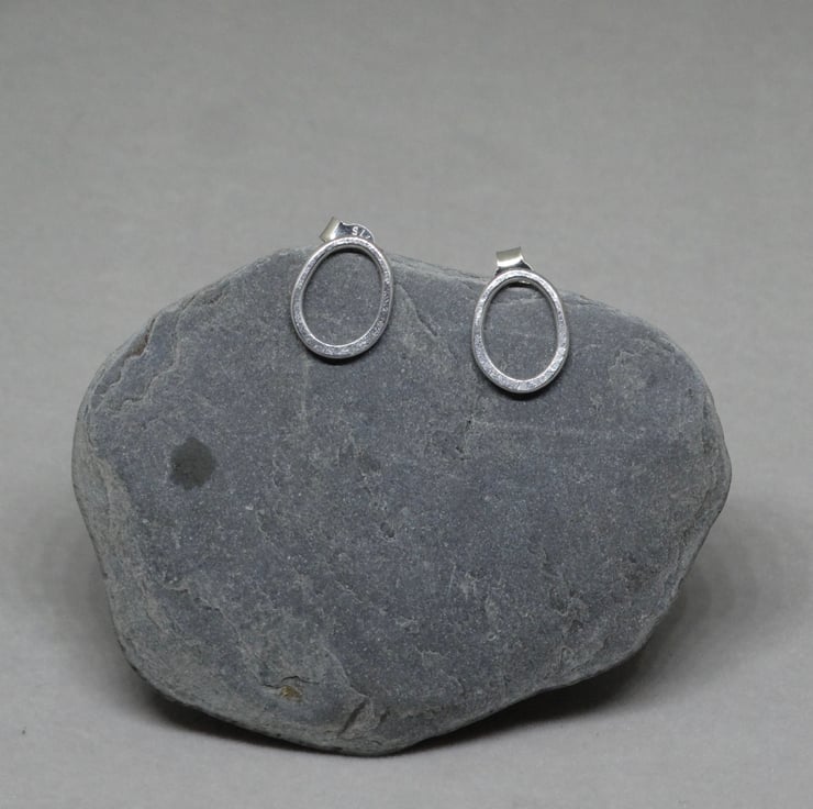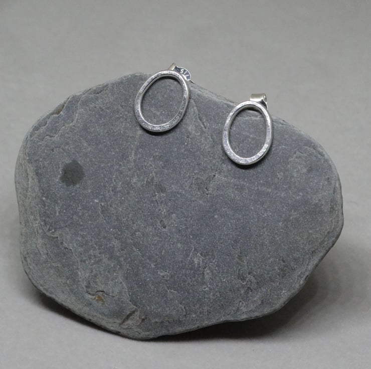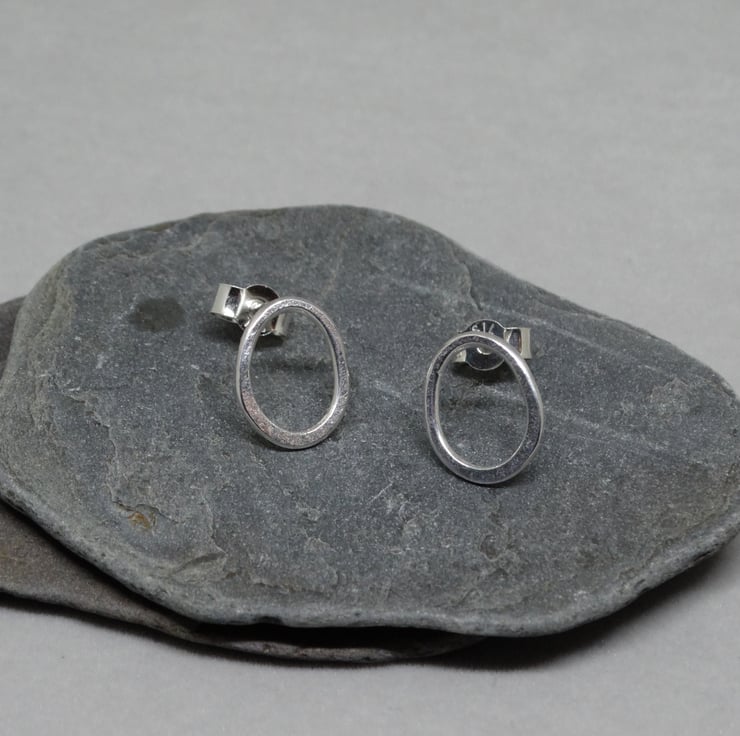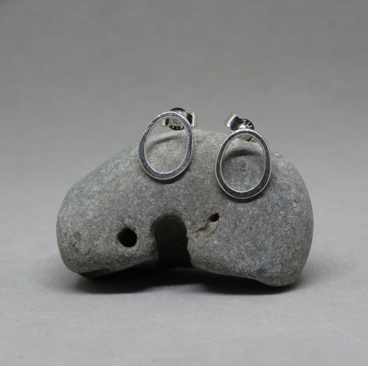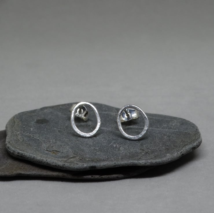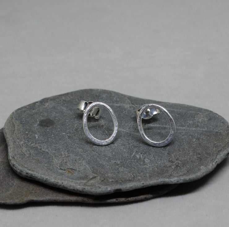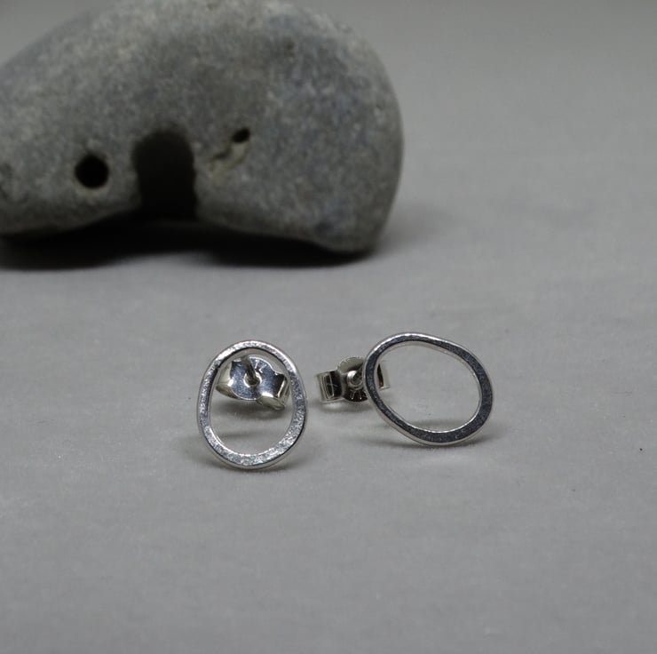 These little pebble shaped studs are formed by hand from 100% recycled sterling silver wire which is hammered to create shape and a subtle texture.