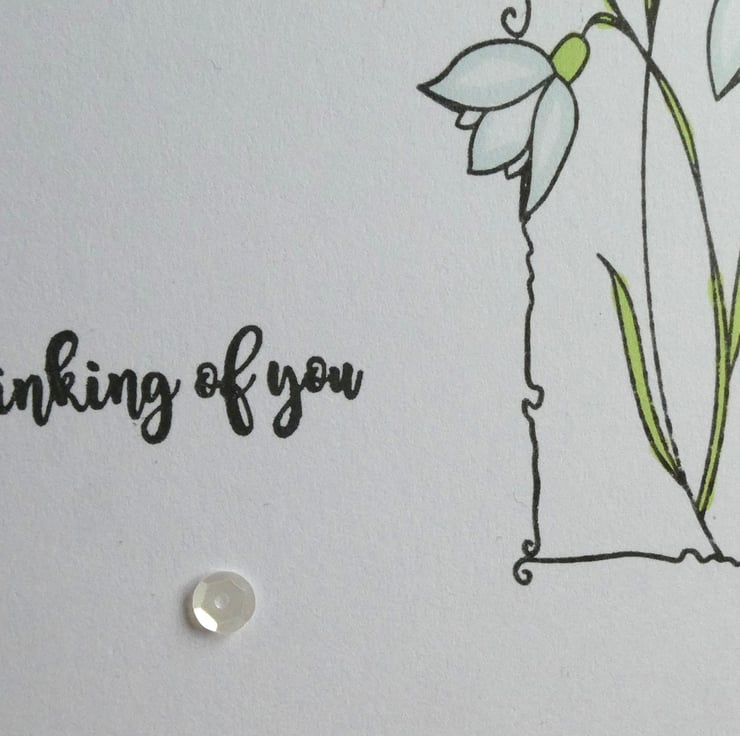 The message Thinking of You has been added on the left hand side, stamped in black archival ink and the design has been completed with 3 white sequins.