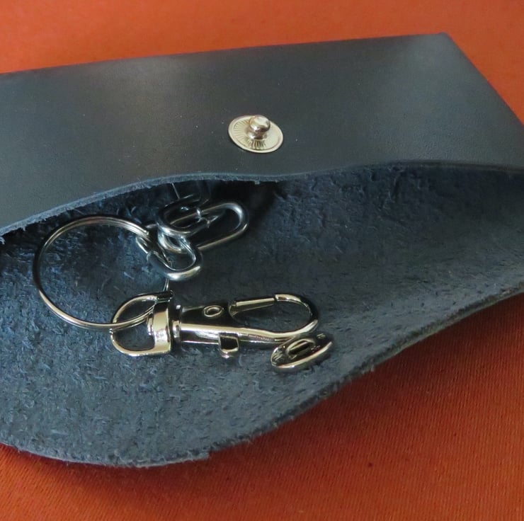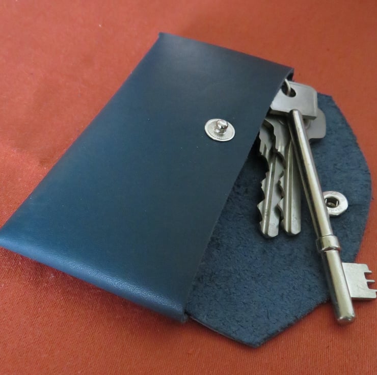 Neat simple key case to keep your keys safe and save holes in your pockets. Made from navy blue leather it will offer good service for many years.