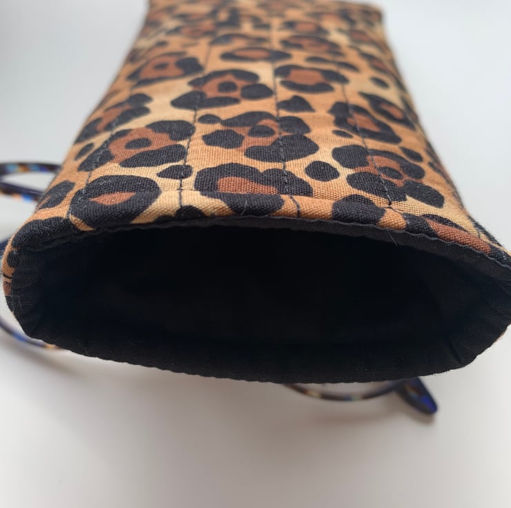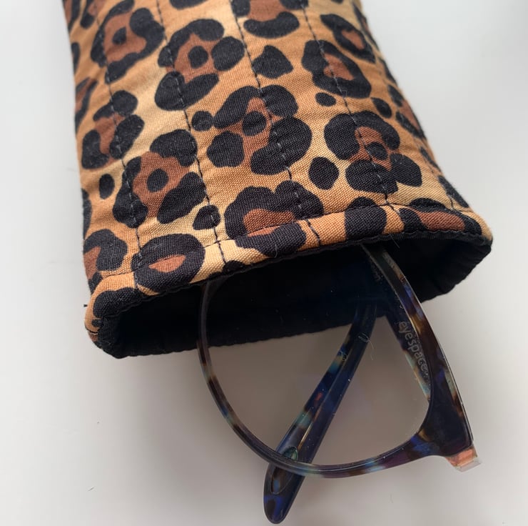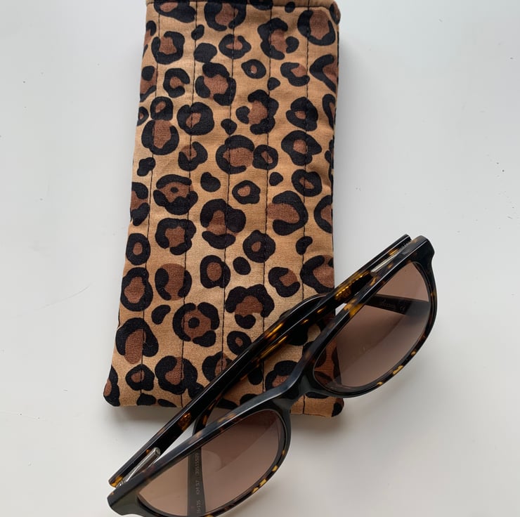 The padded slip in style glasses/sunglasses case is made in this lovely leopard print fabric.