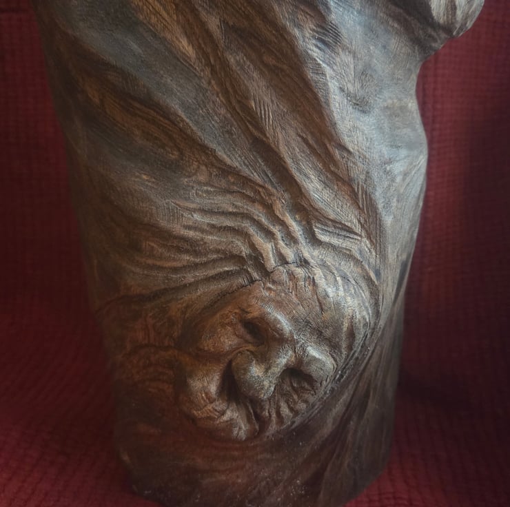 This piece, which I call "The Woodland Guardians," wasn't just carved; it was revealed. I found the original wood on a crisp autumn walk in an ancient, moss-covered copse. Even before I started carving, I felt an incredible energy in the log—it felt like it was watching me.