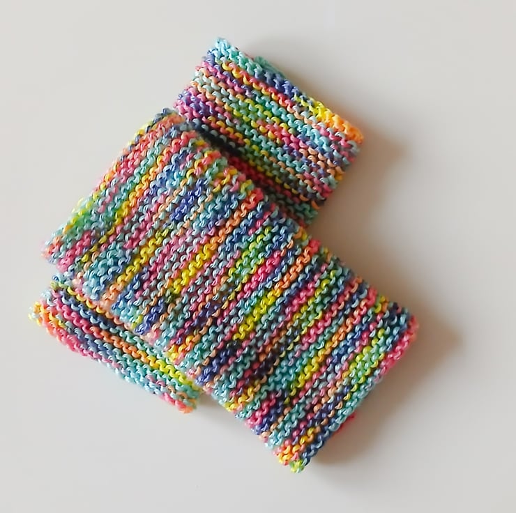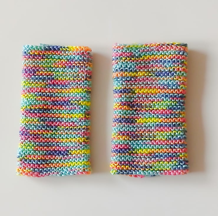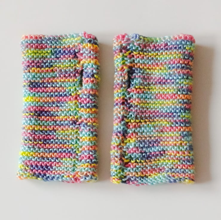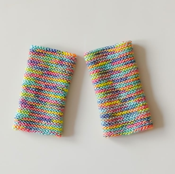 Yarn and colour: They are knitted using Divante knitting yarn in shade Rainbow Brights Ombre. The yarn is a supersoft, premium acrylic.