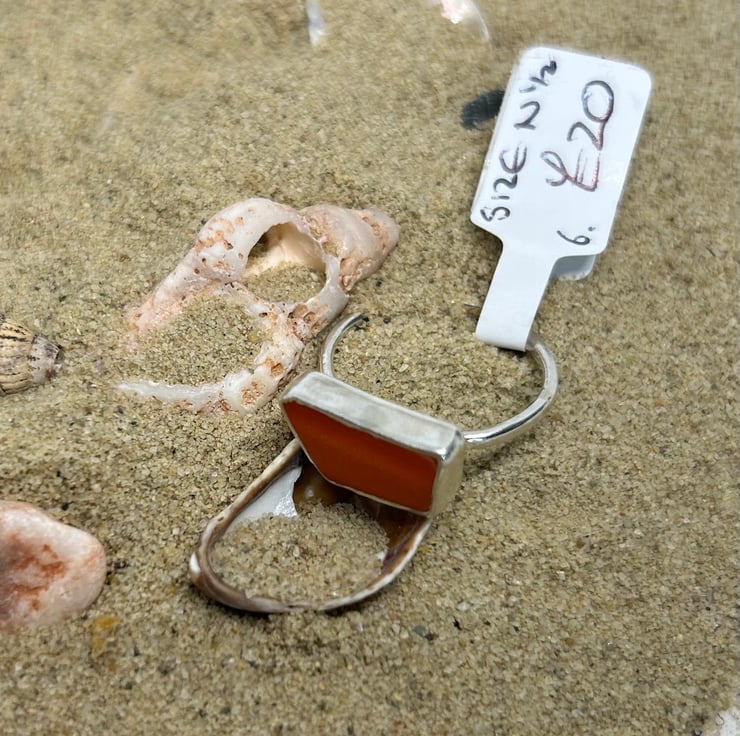 Unusual, one of a kind sterling silver ring, set with striking orange glass. Size N 1/2