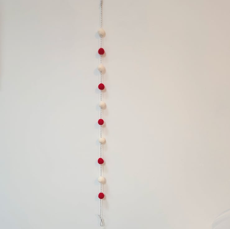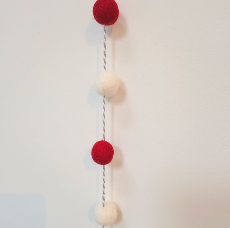 The handmade balls are 2cm in diameter and there are 5 red and 5 creamy white. What makes these extra special is that the white balls are made from Shetland fleece where Annie possibly knows the name of the sheep it came from.