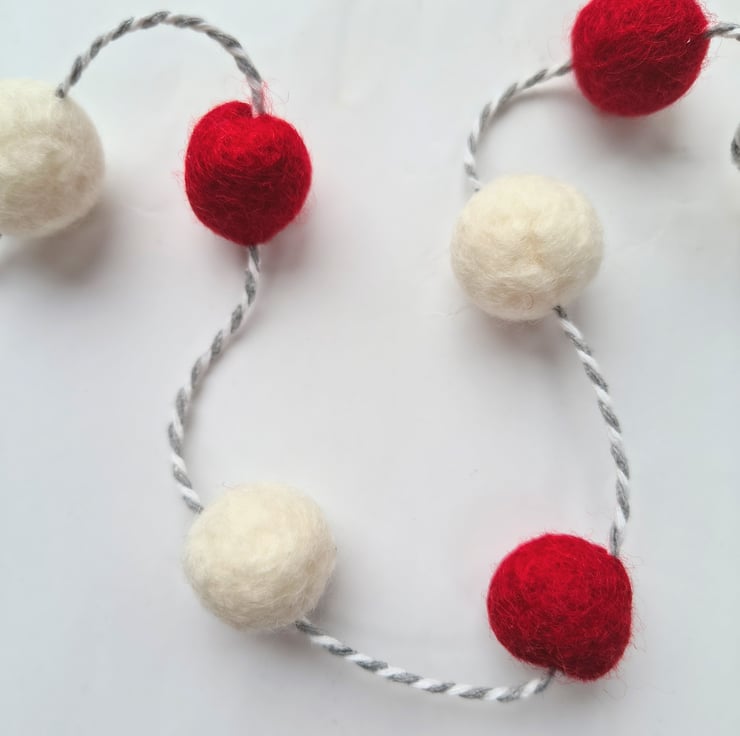 This handmade felt ball garland is perfect for a beautiful, classic Christmas decoration. And it's so beautiful you could leave it up all year.