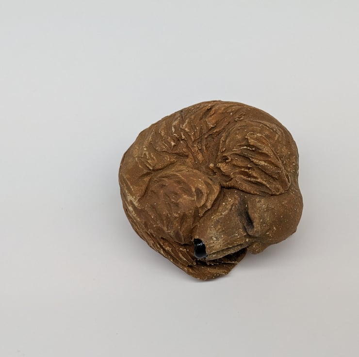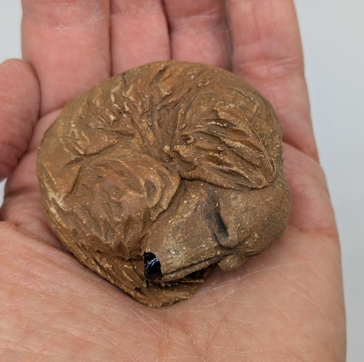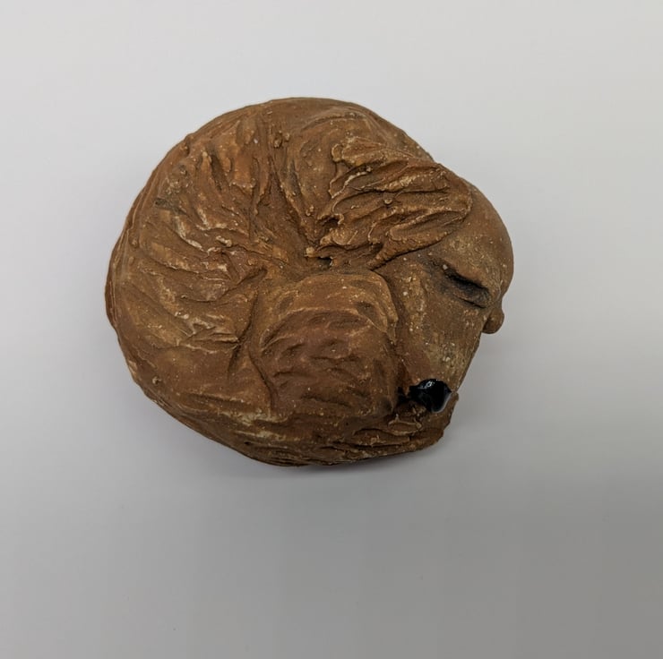 A mini long haired Daxie sculpture handmade in stoneware clay!