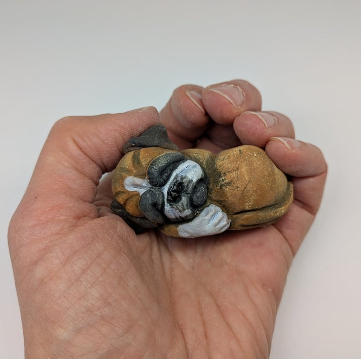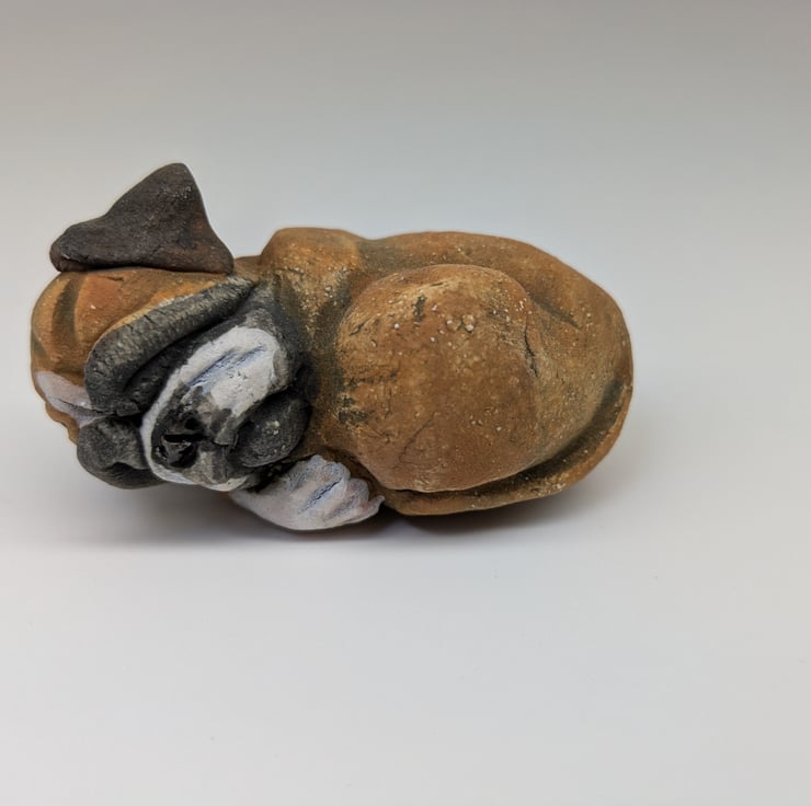 A mini Boxer handmade in stoneware clay!
