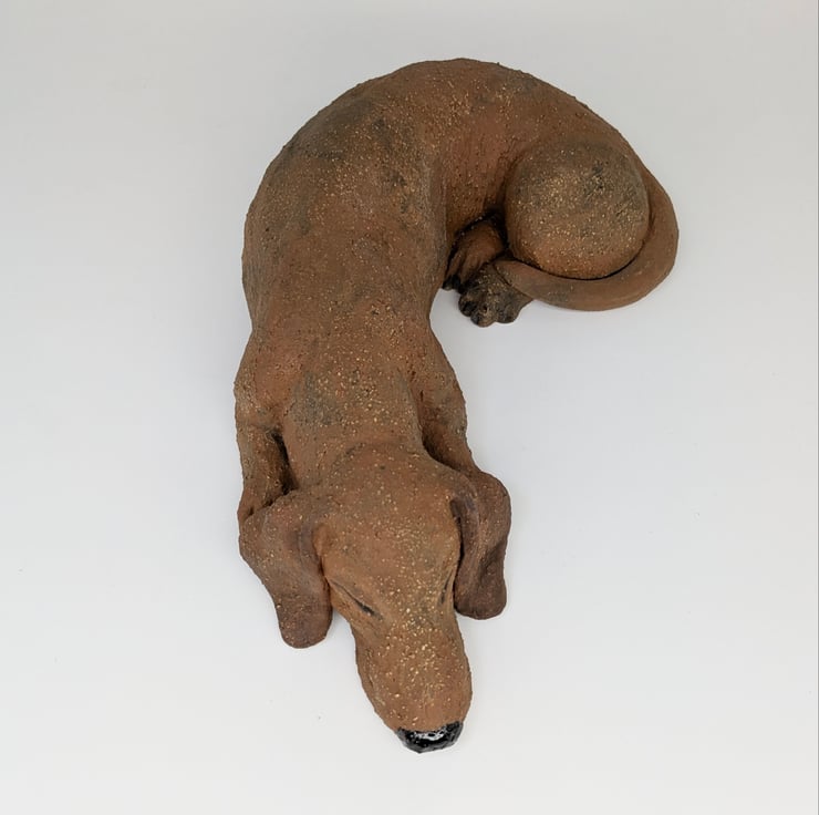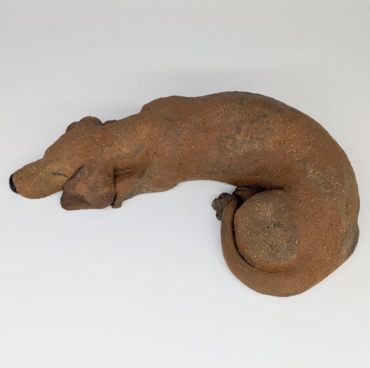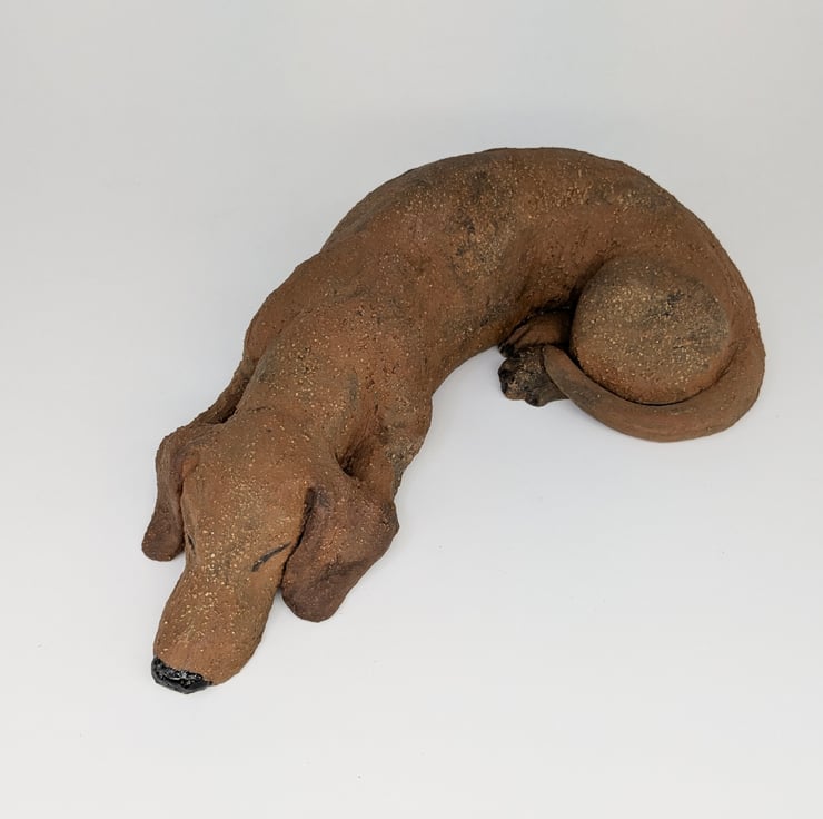 A larger sized Sleeping Daxie hand sculpted in stoneware clay!