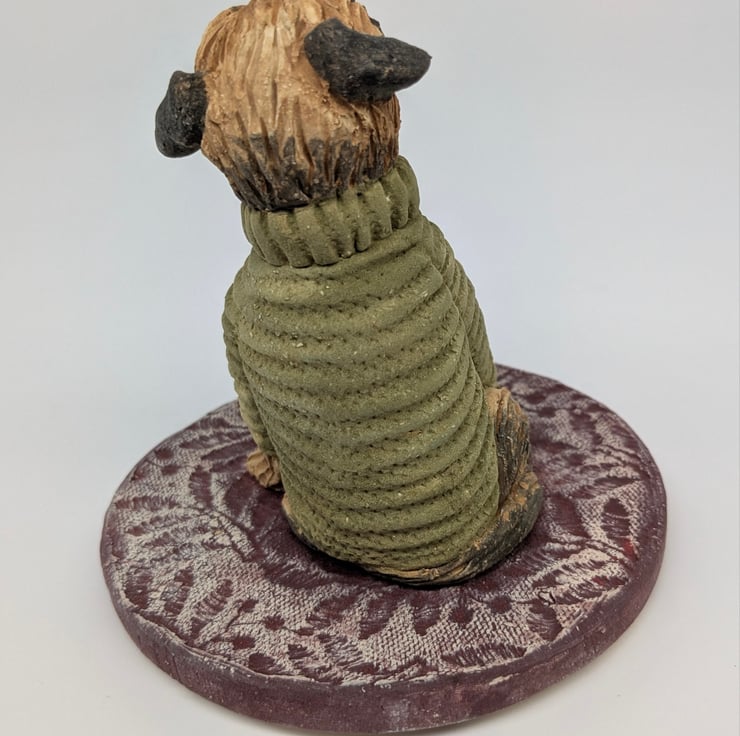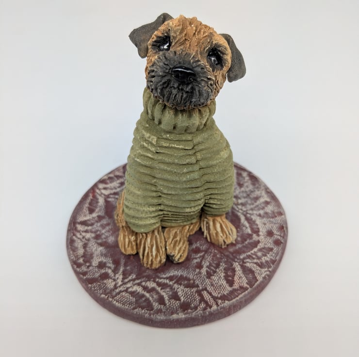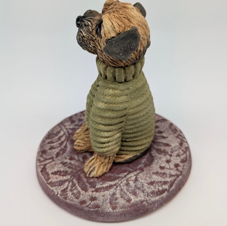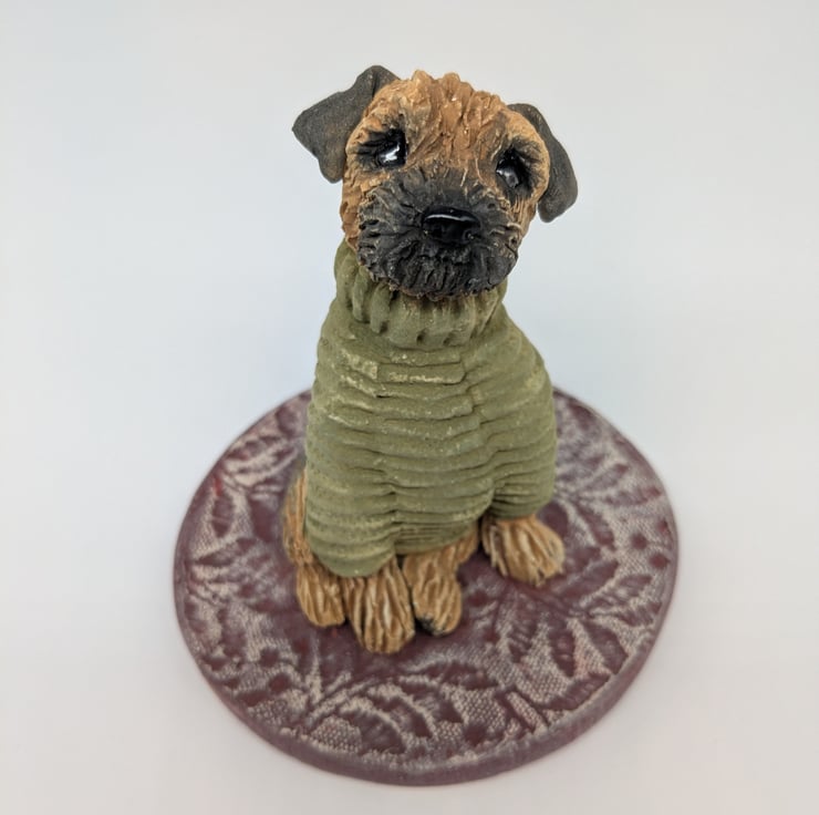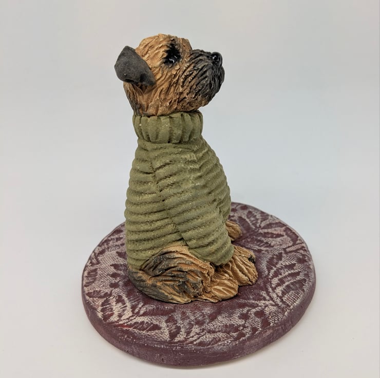 This small Border terrier on a base is hand sculpted in stoneware clay!