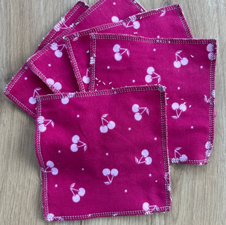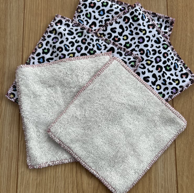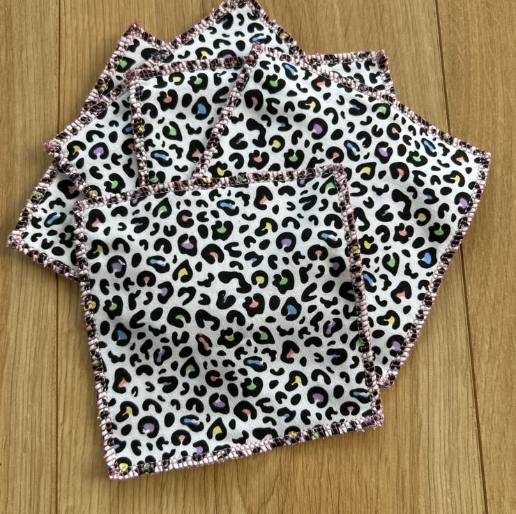 A pack of 5 reusable wipes using Miffy fabric leftover from my sewing projects. I also have cat/whales/cherries and rainbow leopard, please state which design you’d like when ordering.