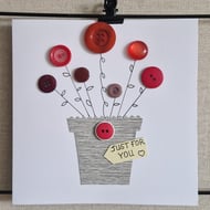 Handmade card using buttons and fabric, with Just for You on the front. It's suitable for birthday, Mother's Day, anniversary, thank you, thinking of you, sympathy etc. I can personalise the front for you too.