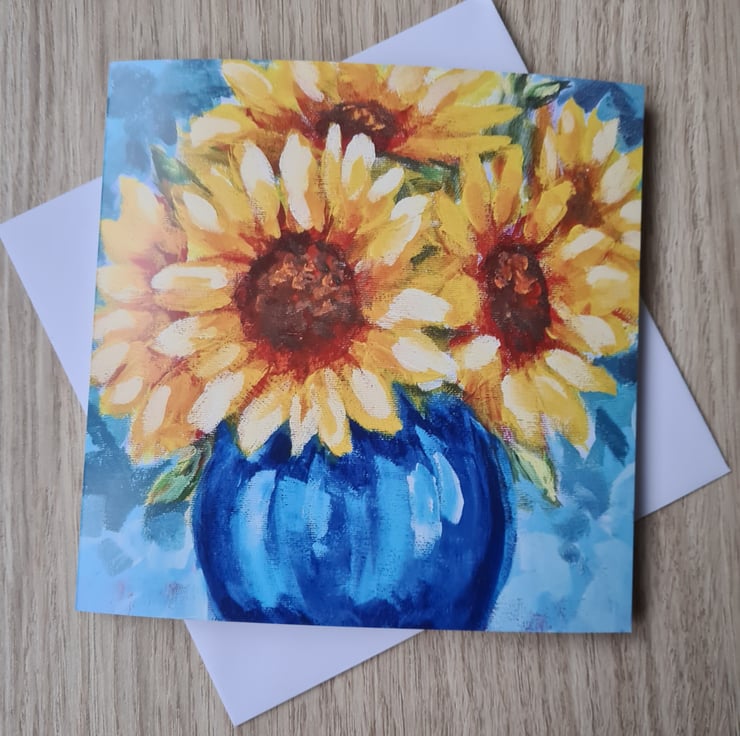 Each card is professionally printed from my artwork and they're all 5x5 inches and blank on the inside for your own message. They include a white envelope and will be presented in cellophane bags and posted in a cardboard backed envelope.