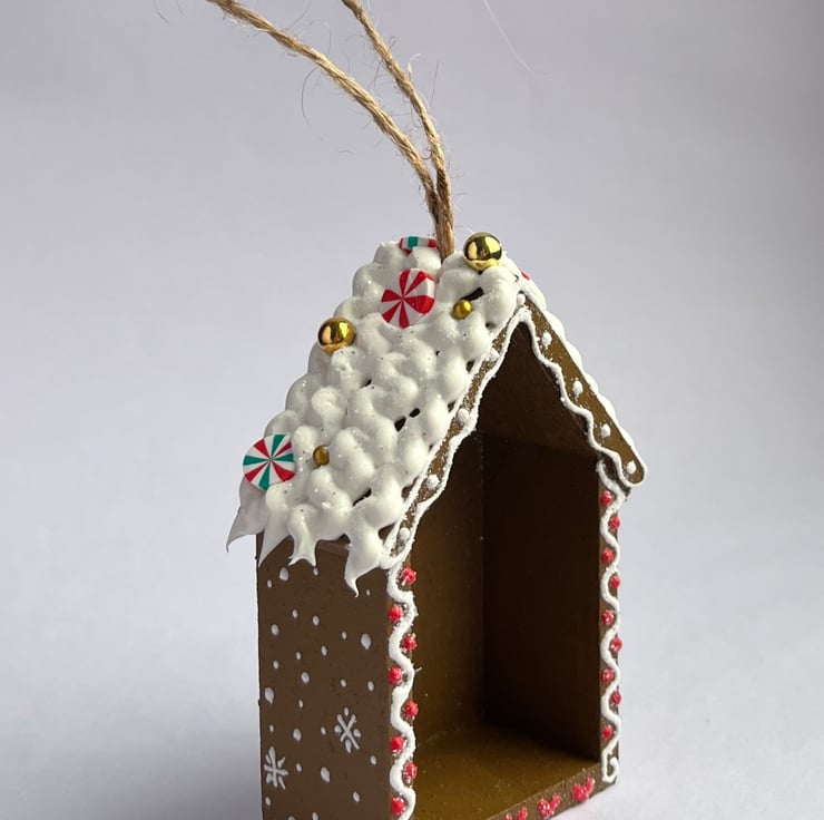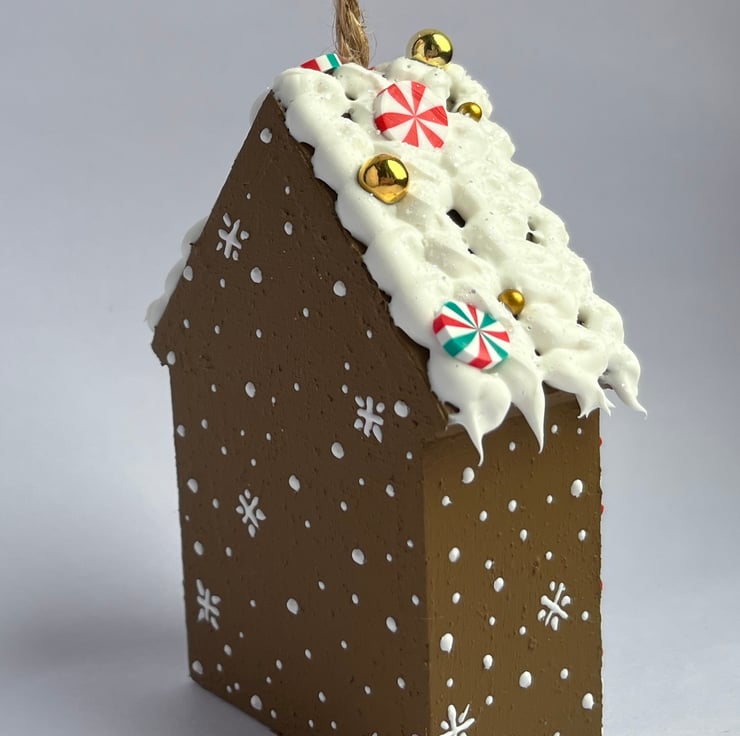 I turned ordinary items into unique decorations to make your holidays even more atmospheric. Hand painted wooden house brings you x1000 Christmas vibe! I tried to recreate the texture of gingerbread and icing and make it look yummy.