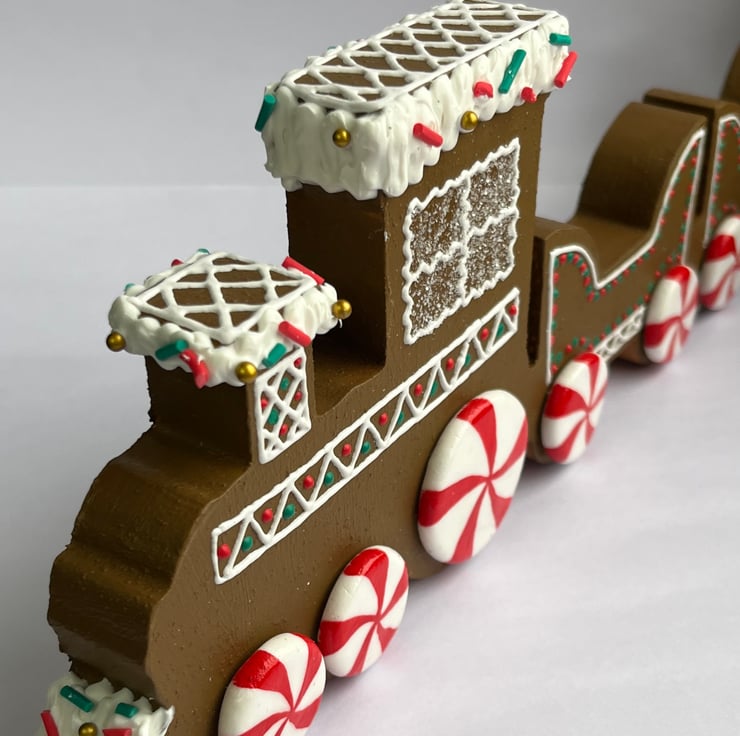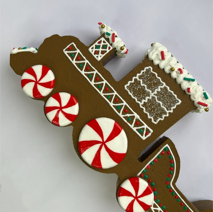 Christmas Decorations Gingerbread Style Wooden Train Handmade - READY TO SHIP
