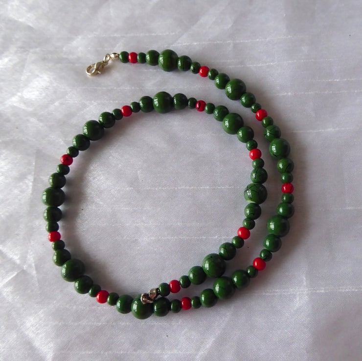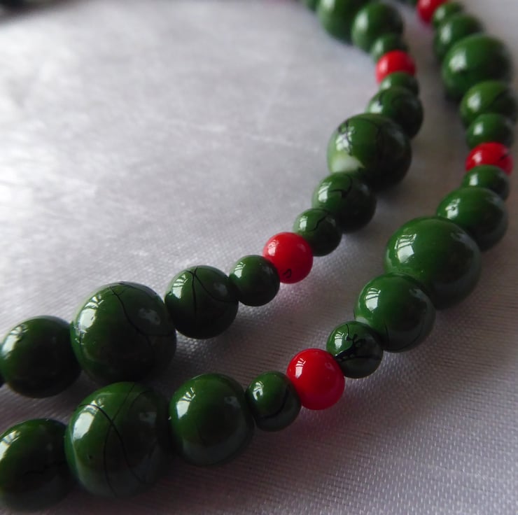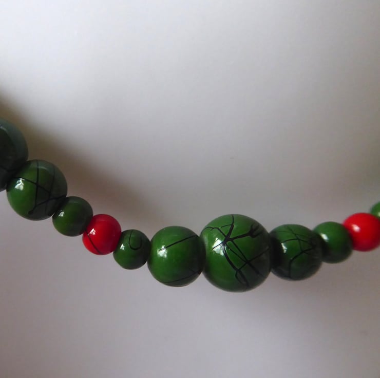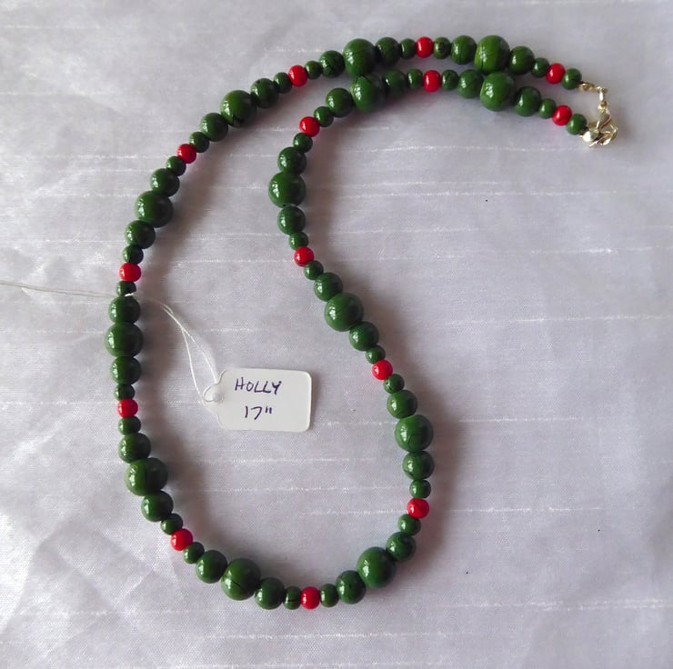 Inspired by the two Holly trees in my garden, one with spikey leaves the other with oval leaves) This necklace was designed and handmade by me, with love and care.