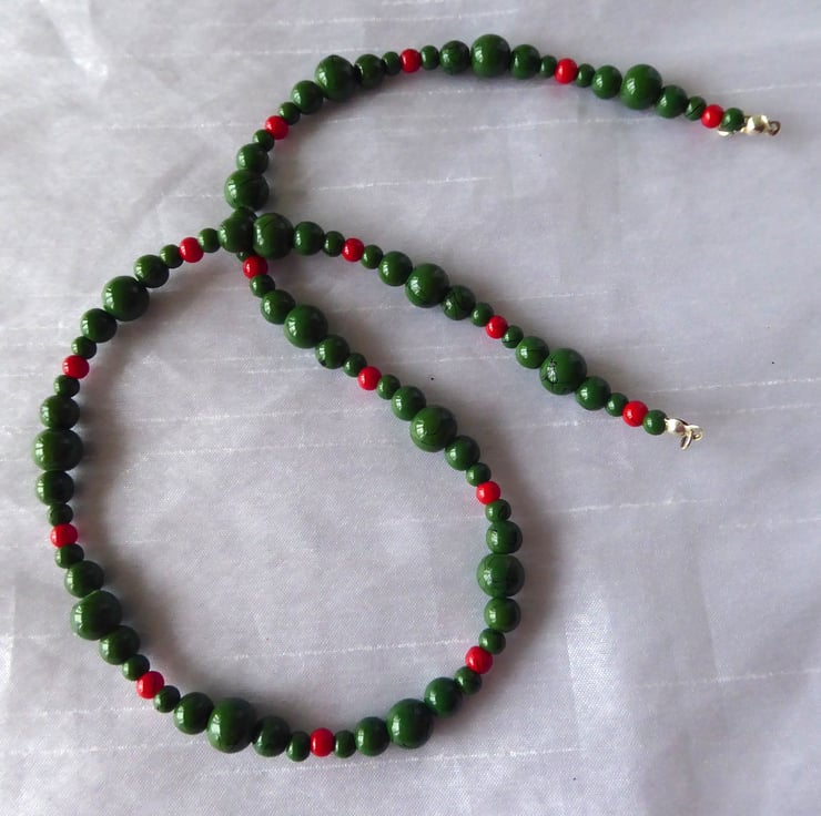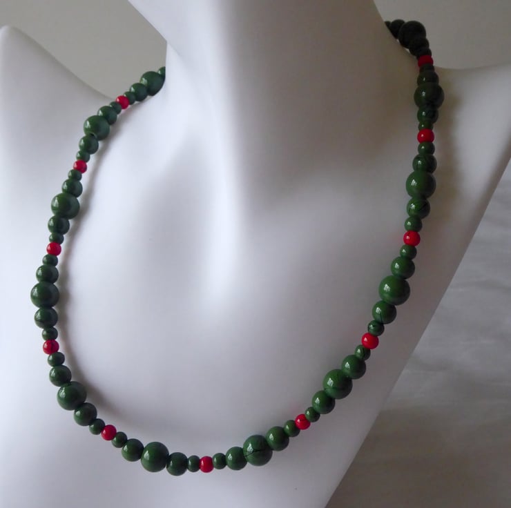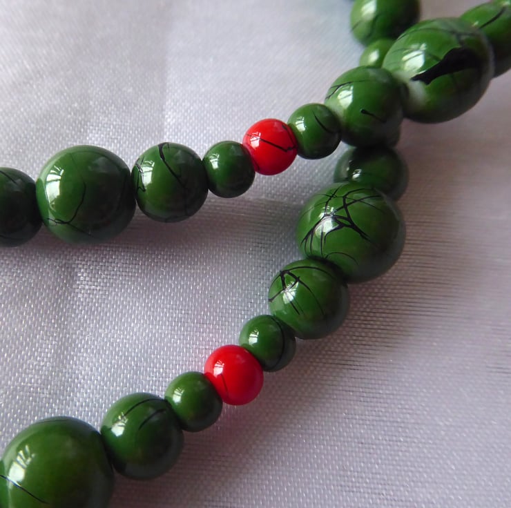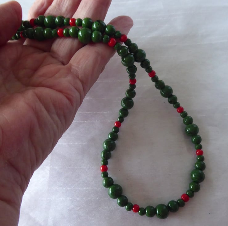 Beaded Green and Red Necklace approx. 19.25 inches long