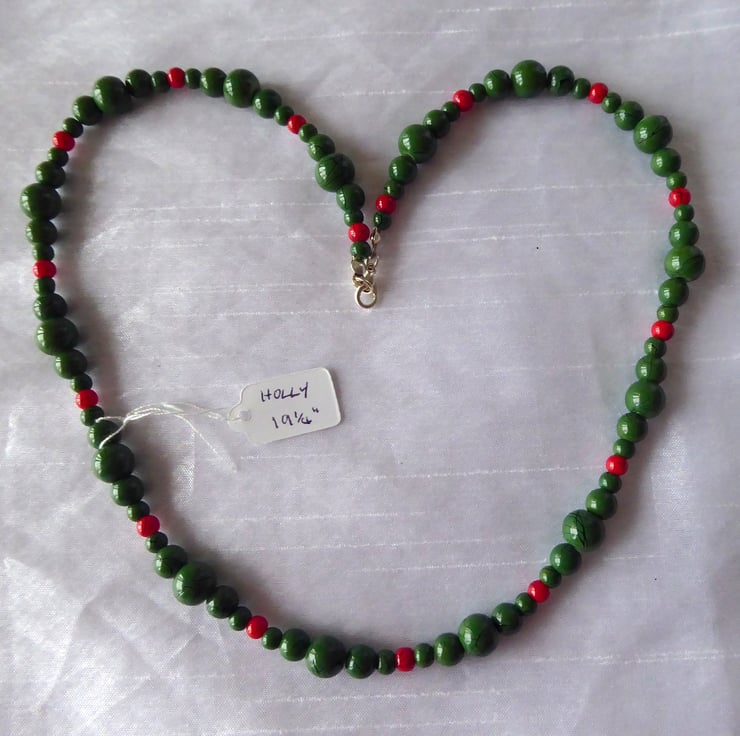 Inspired by the two Holly trees in my garden, one with spikey leaves the other with oval leaves) This necklace was designed and handmade by me, with love and care.