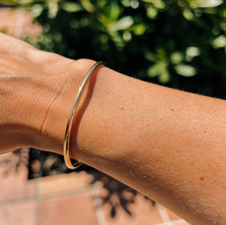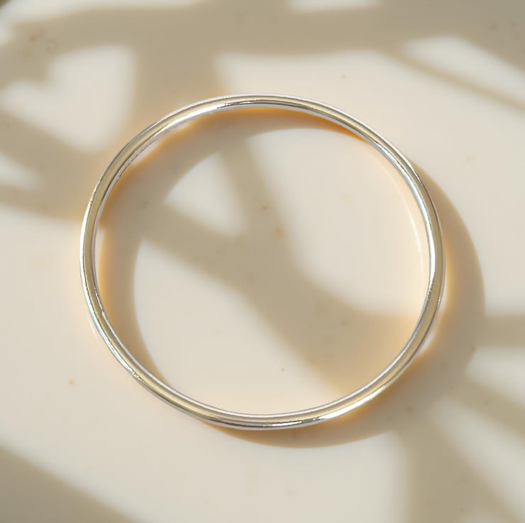 Artisan silver bangles handcrafted in Woolacombe, North Devon by SilverLines Jewellery. Made from 925 recycled ethical sterling silver, each bangle features a smooth finish. this contemporary bangle is perfect for everyday wear, offering timeless style and sustainable craftsmanship.
