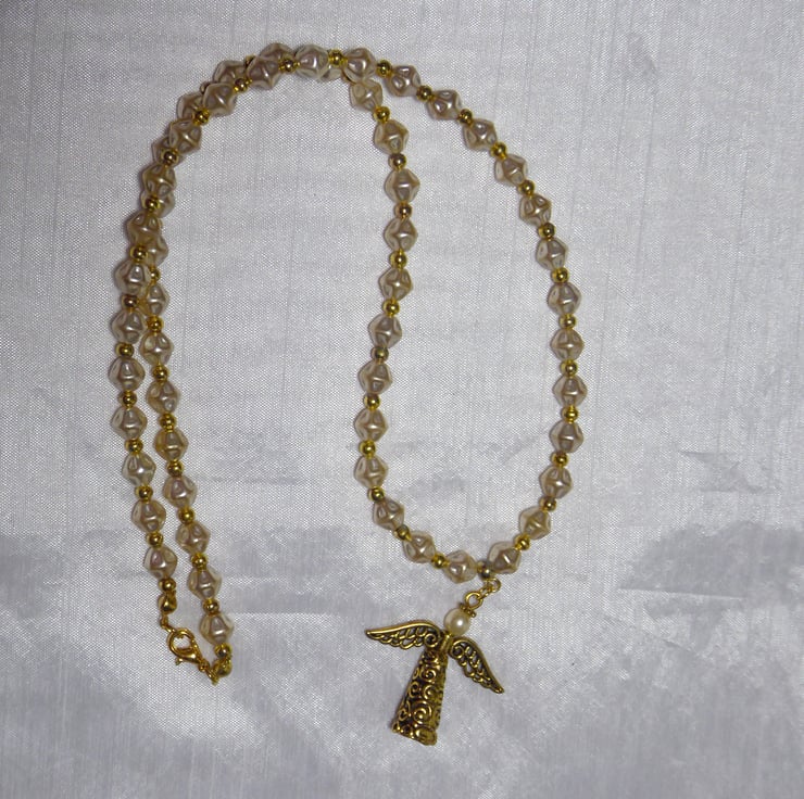 20 inch Beaded Necklace with Golden Christmas Angel Pendant