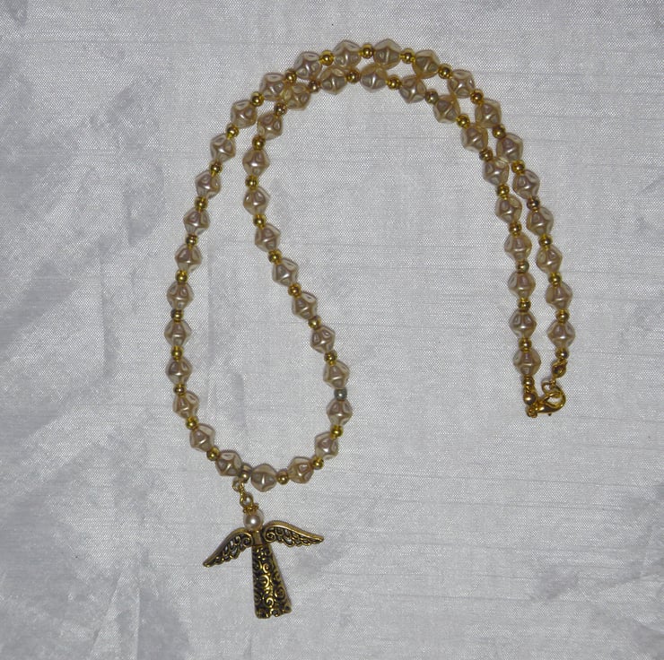 18 inch Beaded Necklace with Golden Christmas Angel Pendant