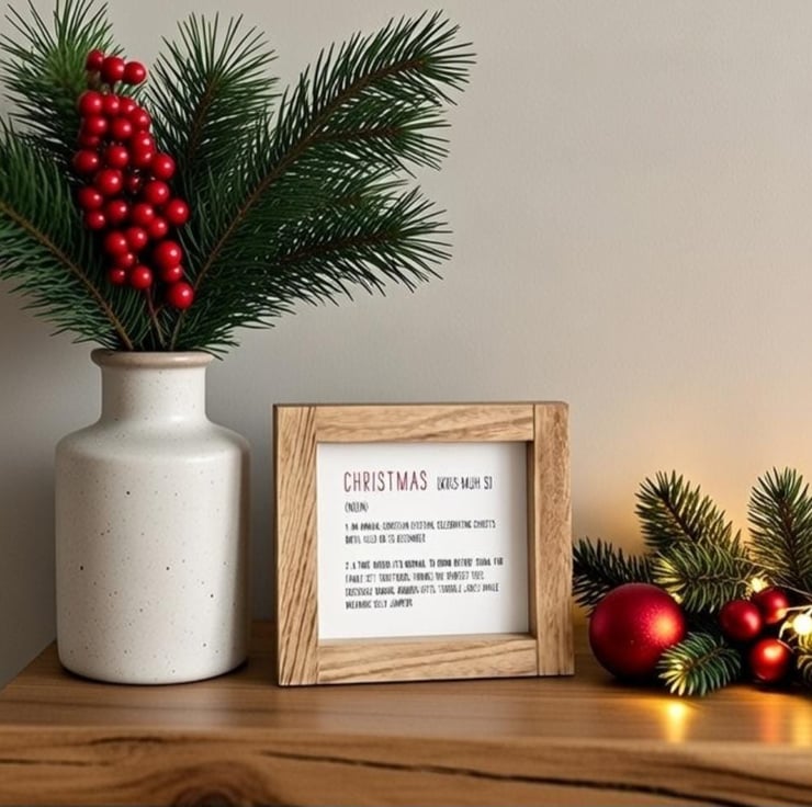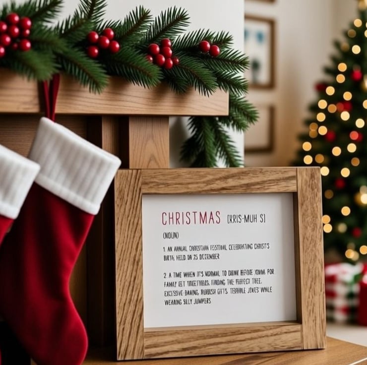 Funny Christmas Definition Sign Solid Oak Frame, Festive Decor