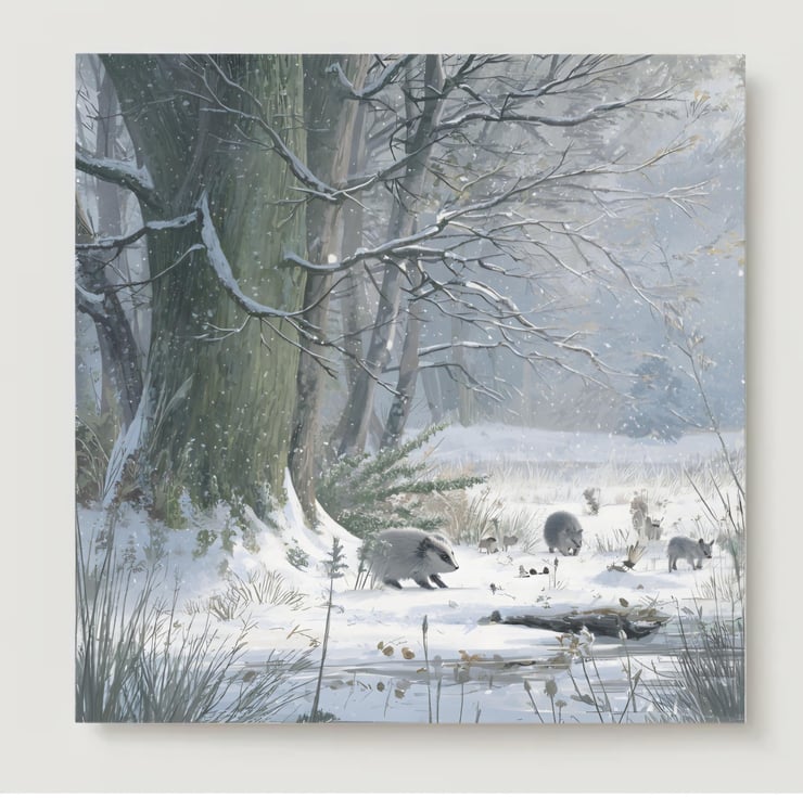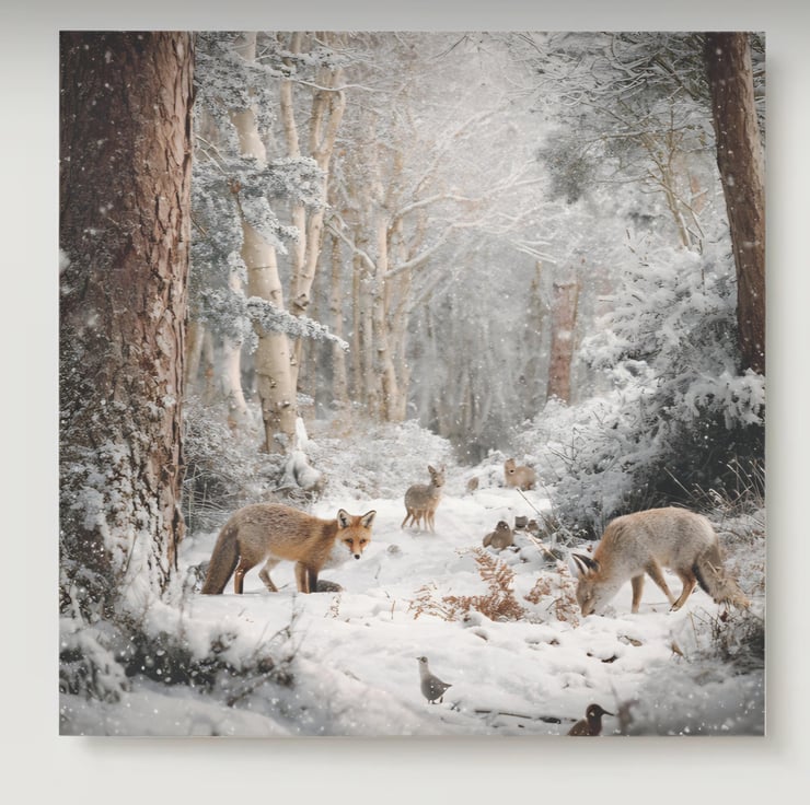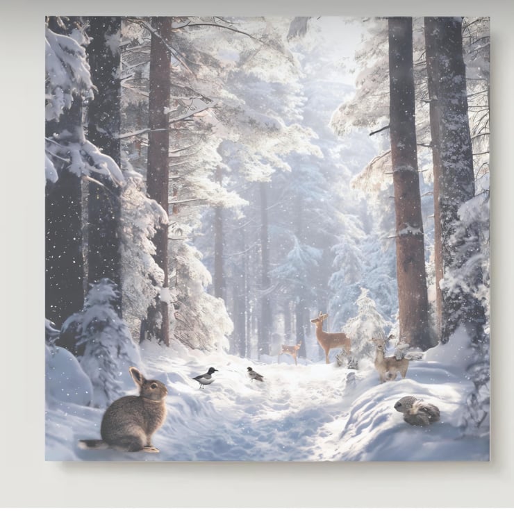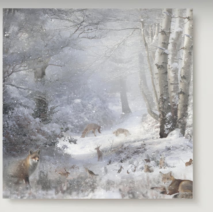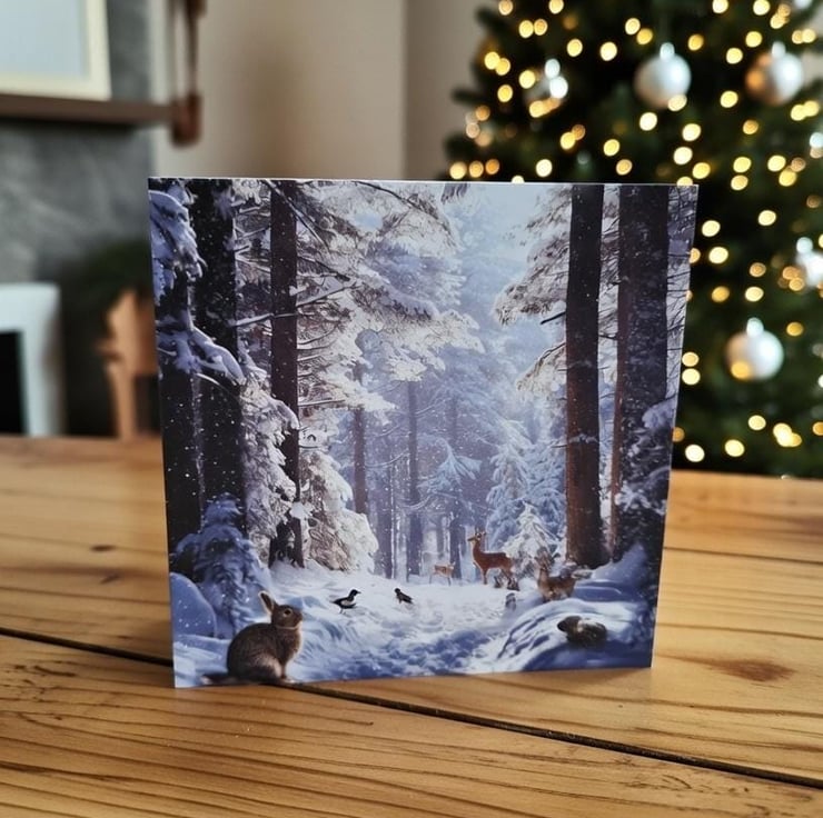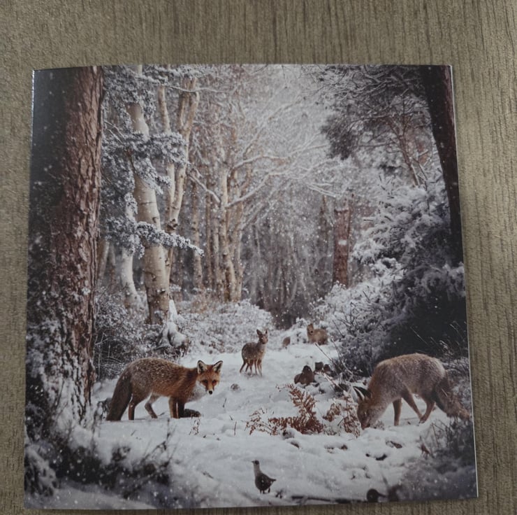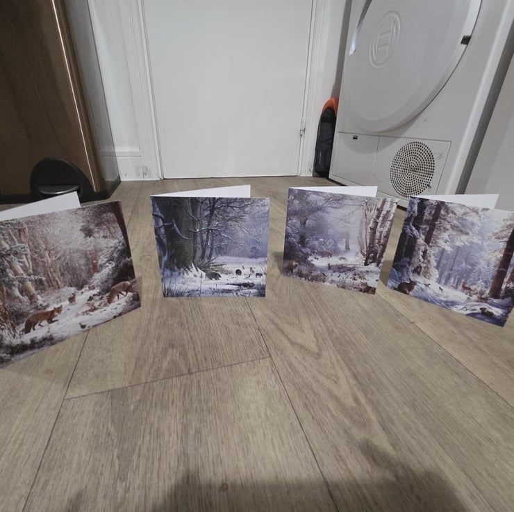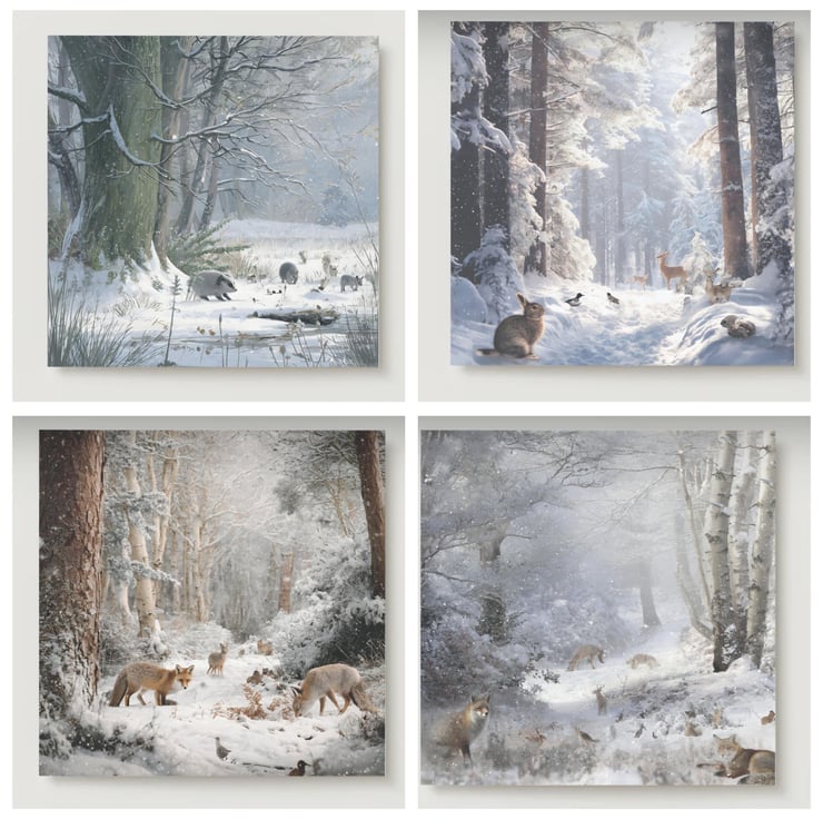 Pack of 4 Winter Scene Snow Woodland Animals Christmas Cards With Envelopes