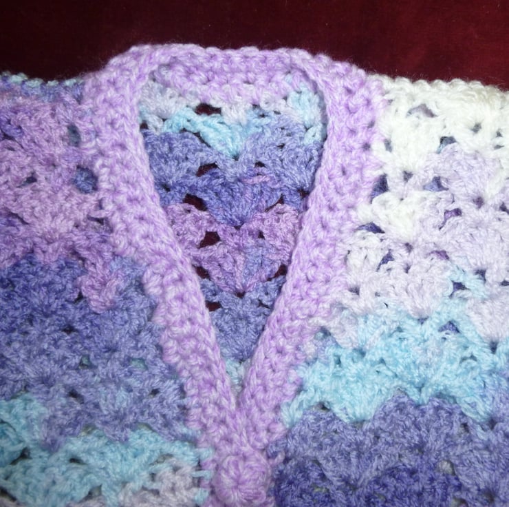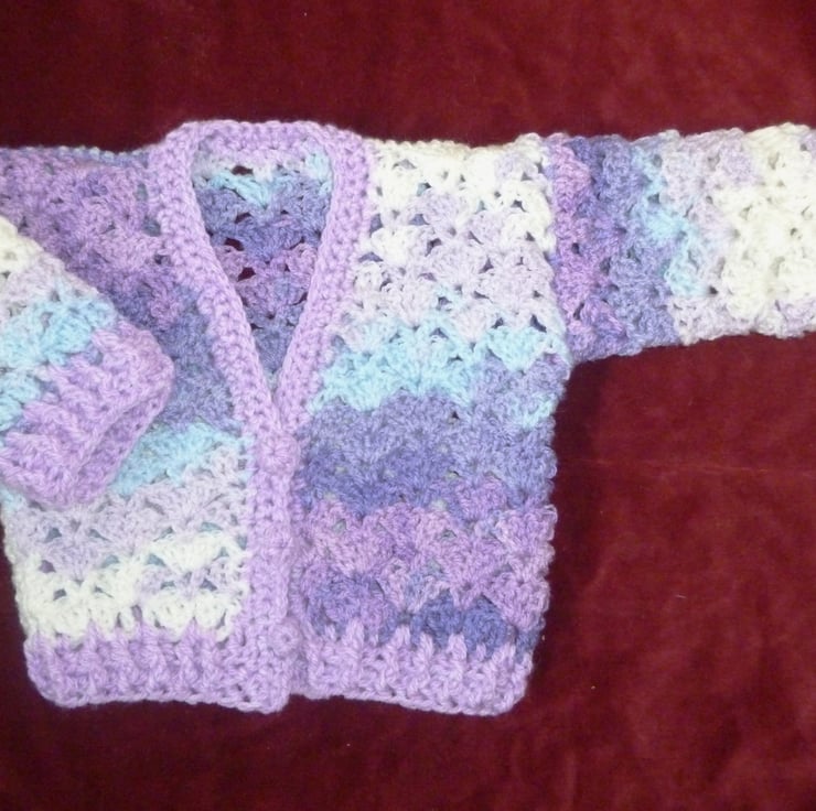 this is a pretty baby cardigan, crocheted to my own design and instructions.