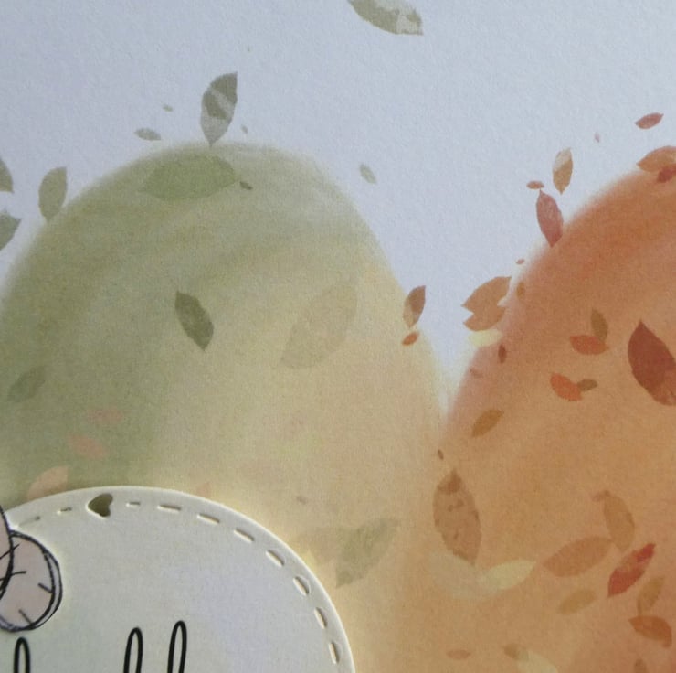 The message and the cat have been raised slightly on foam pads above a printed image of a heart in lemon, orange and green shades on a white background.
