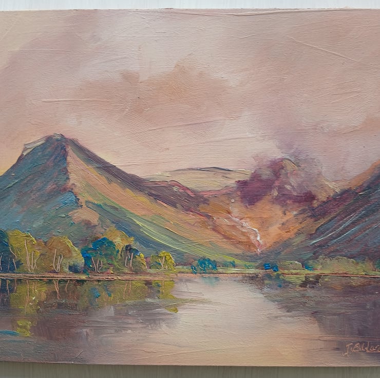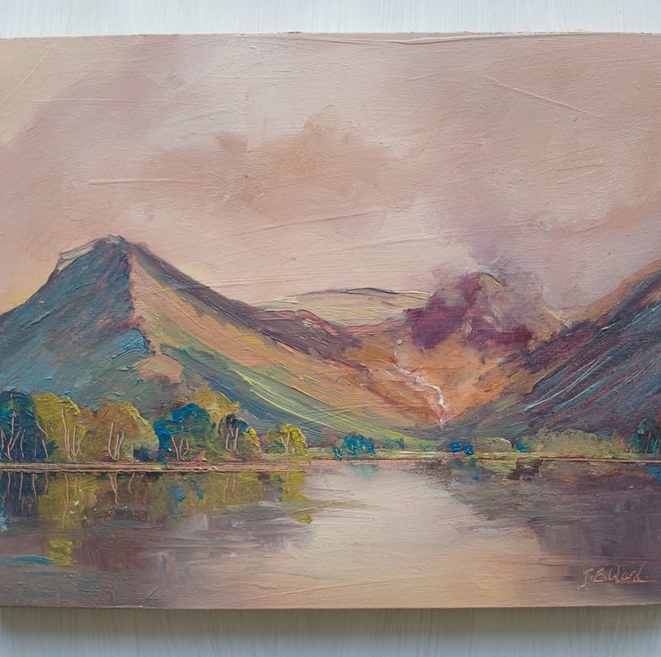 This Original oil painting of Buttermere shows Fleetwith Pike and Haystacks.