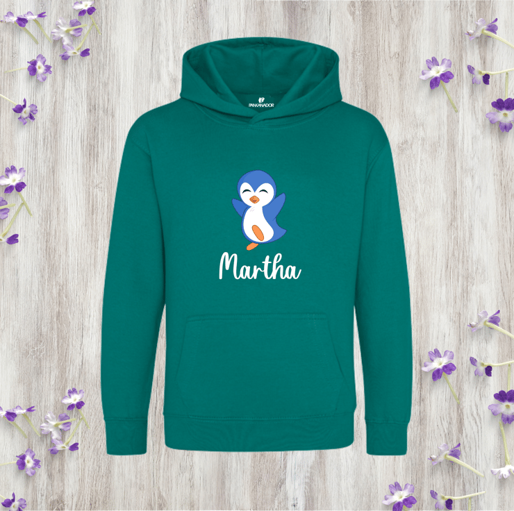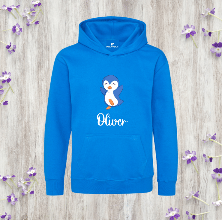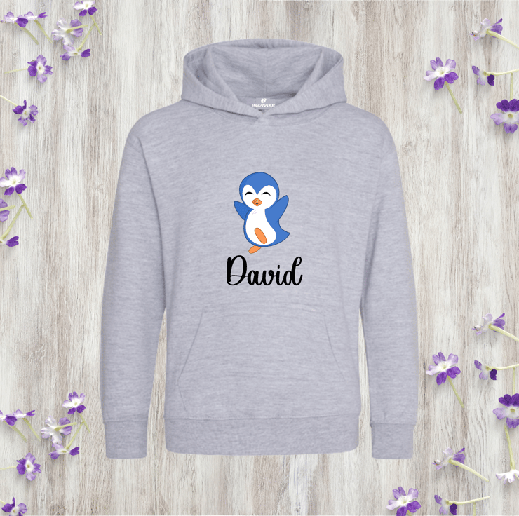 This adorable penguin hoodie is designed to bring extra comfort and smiles to little ones who adore wildlife and fun fashion! Featuring a charming penguin illustration and your child’s name beneath it, this cosy jumper is both personal and playful.