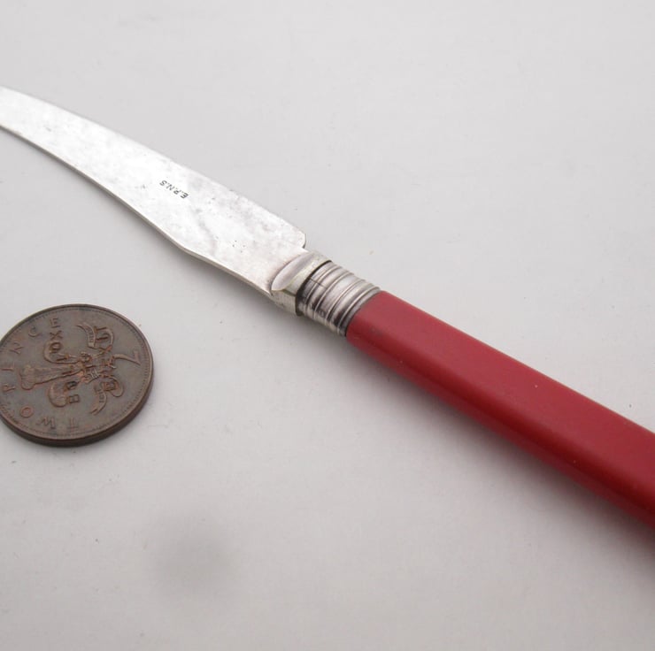 It's about 17.5cm long and the black in the letters is a harmless water-based acrylic ink. The joint between blade and handle is still sound and it's generally in good nick; there is a little residual tarnish on the blade and the collar. I quite like the 'antiqued' look but a spot of silver polish and elbow grease should remove it if you want the blade to be shinier.