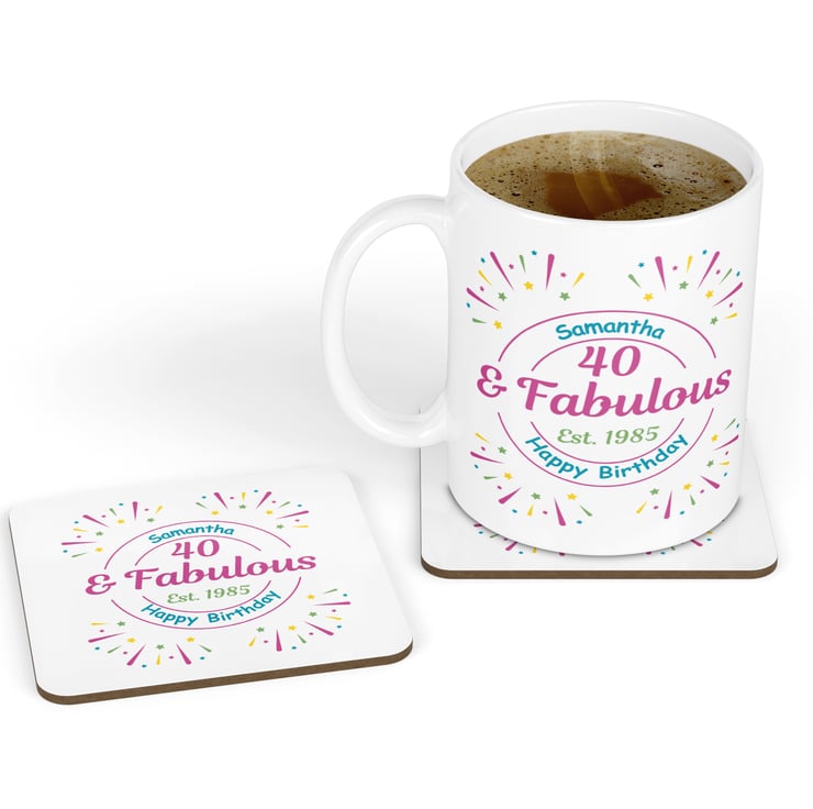 Personalised Birthday Mug & Coaster Gift Set.